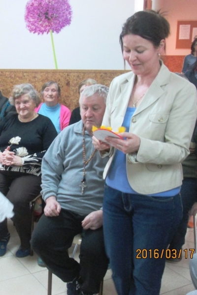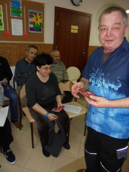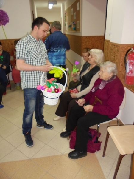Dnia 8 marca w Środowiskowym Domu Samopomocy w Połańcu w bardzo miłej atmosferze odbyła się uroczystość Dnia Kobiet. Wszyscy mężczyźni z naszego domu przygotowali i przedstawili specjalnie dla kobiet część artystyczną, w której nie zabrakło pięknych piosenek o kobietach. Poza tym każda z pań otrzymała wykonane przez naszych panów kartki z życzeniami oraz ręcznie wykonane kwiaty. Dopełnieniem całości był słodki poczęstunek, kawa i herbata. Był to bardzo miły czas spędzony we wspólnym gronie.