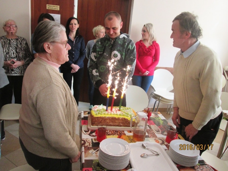 Co miesiąc w naszym domu uroczyście obchodzimy urodziny uczestników urodzonych w danym miesiącu. W pracowni kulinarnej zostaje przygotowywany tort. Przy uroczystym „ Sto lat!” i muzyce biesiadujemy przy wspólnym stole.