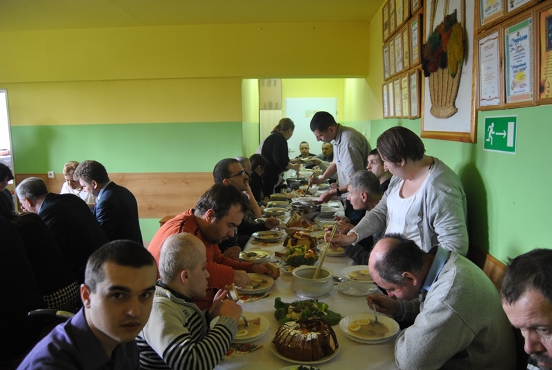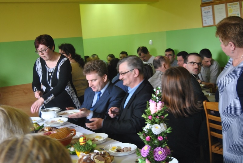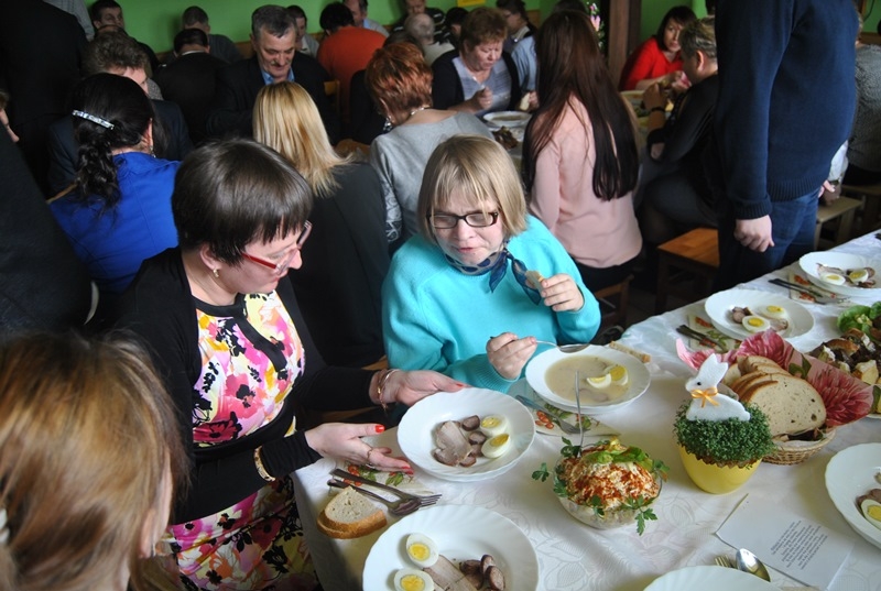 23 marca zgodnie z tradycją odbyło się poprzedzające Święta Wielkanocne uroczyste śniadanie w Warsztacie Terapii Zajęciowej. Do świątecznego stołu zaprosiła Kierownik WTZ Pani Bogumiła Pasek, która wraz z podopiecznymi Joanną Sobierajską i Joanną Staniszewską, naszym gościom Burmistrzowi MiG Panu Jackowi Tarnowskiemu oraz Przewodniczącemu Rady Miejskiej Panu Stanisławowi Lolo oraz wszystkim zgromadzonym złożyła życzenia świąteczne i wręczyła przygotowany specjalnie na tę okazję stroik wielkanocny. Był to czas wspólnych przeżyć, rozmów i refleksji. Dla wielu podopiecznych śniadanie organizowane w placówce jest dobrym czasem do wspólnego przeżywania prawdziwych Świąt Wielkanocnych w gronie przyjaciół i współtowarzyszących im terapeutów, a także zaproszonych gości.