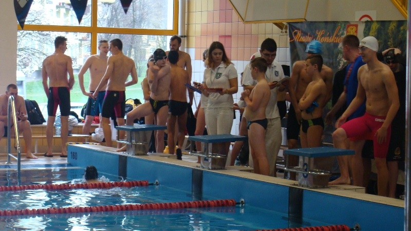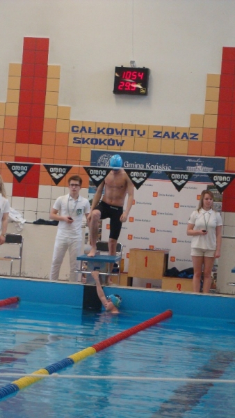 Po sobotnich zmaganiach młodszych zawodników Delfina ich starsi koledzy wzięli udział w niedzielę 10 kwietnia 2016r. w drugiej edycji Świętokrzyskiej Dużej Ligi Pływackiej, która odbyła się na pływalni Miejskiej w Końskich. W zawodach uczestniczyło 192 zawodników z 11 klubów. Zawodnicy i zawodniczki rywalizowali w 8 konkurencjach indywidualnych i sztafetach. Nasz klub reprezentowało siedmioro podopiecznych trenera Kacpra Ciepieli : Tomasz Szweda, Dominika Szweda, Michalina Meszek, Norbert Czerwiec, Maciej Olszewski, Maciej Rybak oraz Tatiana Adaś nasza debiutantka. Wszyscy nasi zawodnicy w swych startach poprawili swoje dotychczasowe wyniki . Wszystkim zawodnikom gratulujemy udanych startów. Następne zawody Dużej Ligi 15 maja w Ostrowcu Świętokrzyskim.