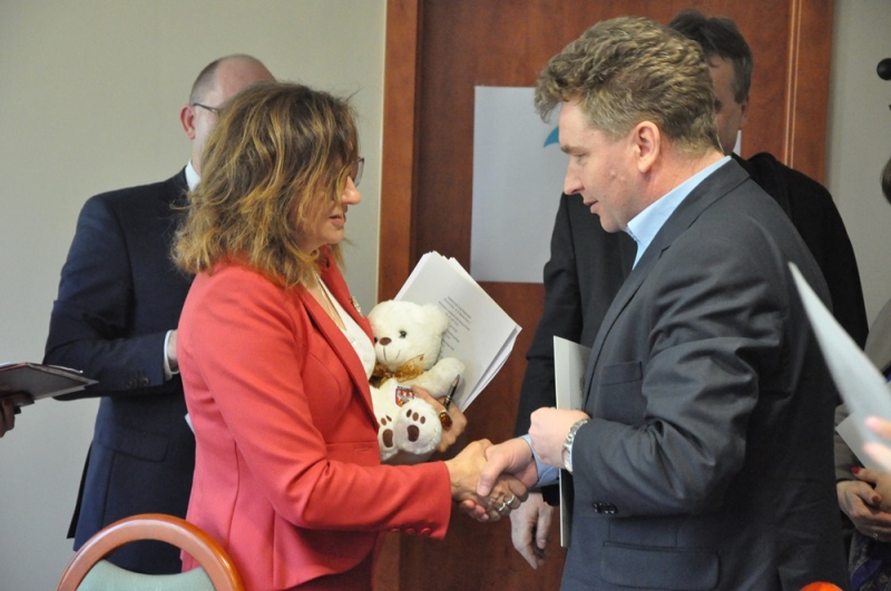Wczoraj, tj. 26 kwietnia 2016 roku Burmistrz Połańca – Jacek Tarnowski i Skarbnik – Małgorzata Żugaj podpisali umowę w Urzędzie Wojewódzkim z Wojewodą Świętokrzyskim – Agatą Wojtyszek w sprawie dofinansowania zadania polegającego na zapewnieniu funkcjonowania opieki w istniejącym żłobku w Połańcu. Zadanie dotyczy programu "Maluch" z Ministerstwa Rodziny, Pracy i Polityki Społecznej, z którego pozyskaliśmy środki na wsparcie rozwoju placówki.