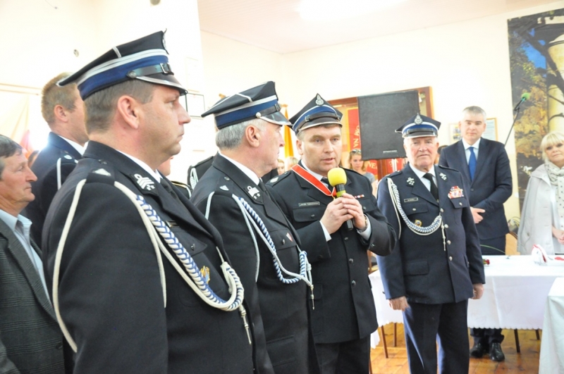 W dalszym przebiegu uroczystości prezes – Stanisław Walczyk przypomniał o randze święta, podkreślił, że miesiąc maj poprzez uroczystości odwołuje się do żywotności narodu, historii naznaczonej bólem i cierpieniem, ale przypomina też o wielkich bohaterskich czynach. Brać strażacka potrafi działać dla wspólnego dobra. Maj to miesiąc Maryjny, o czym przypominają nam wszystkim ci mieszkańcy, którzy dają wyraz zaufania NMP poprzez modlitwę przy przydrożnych kapliczkach czy krzyżach. Strażacy także są blisko z Maryją, z wiarą katolicką. Prezes przypomniał także o znaczeniu Konstytucji 3 Maja. Na zakończenie podkreślił, że strażacy to nie tylko ci co gaszą, ratują, ale to też ci co budują i scalają lokalną społeczność, to ci którzy wśród trudów dnia potrafią odnaleźć czas dla innych –„Bogu na chwałę, ludziom na pożytek”. Za to poświęcenie skierował podziękowania do wszystkich strażaków z naszej gminy. Prezes podkreślił także przemiany, jakim poddane zostały jednostki OSP. „Samorząd na czele z burmistrzem bardzo aktywnie wspiera strażackie działania na przestrzeni ostatnich lat poprzez modernizację straży, zakup niezbędnego sprzętu, samochodów pożarniczych. Jako brać strażacka dostrzegamy i dziękujemy za to działanie” - dodał prezes.