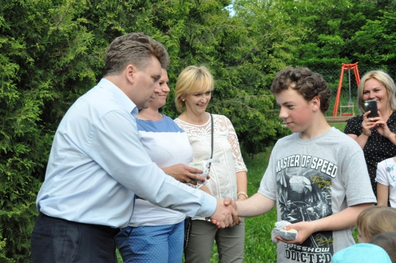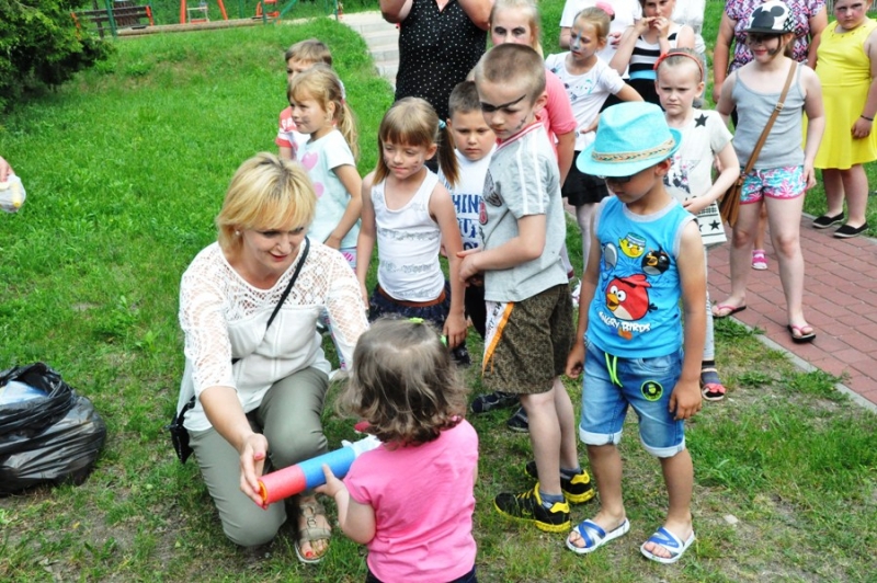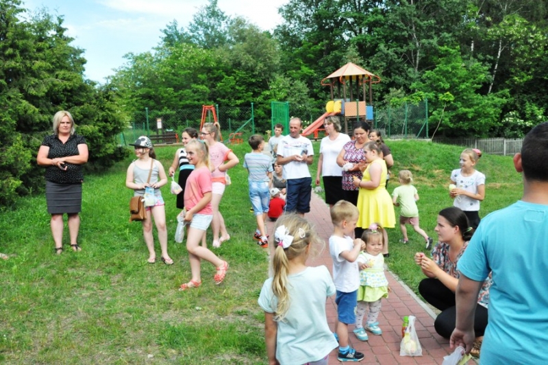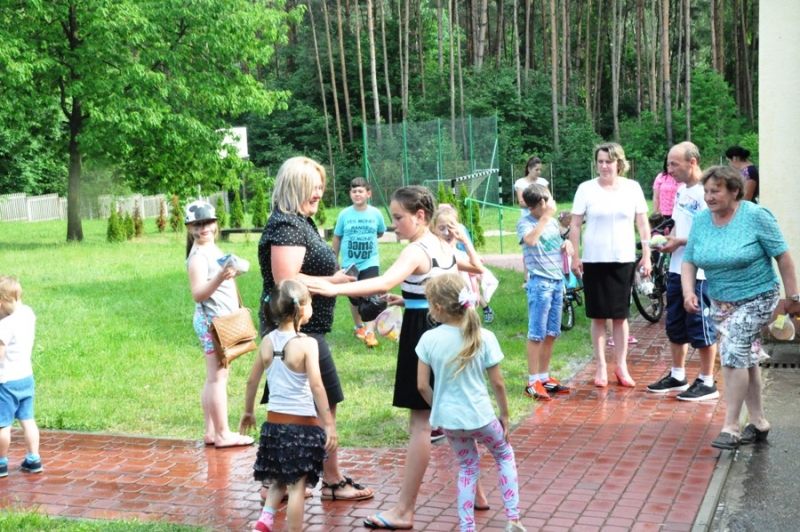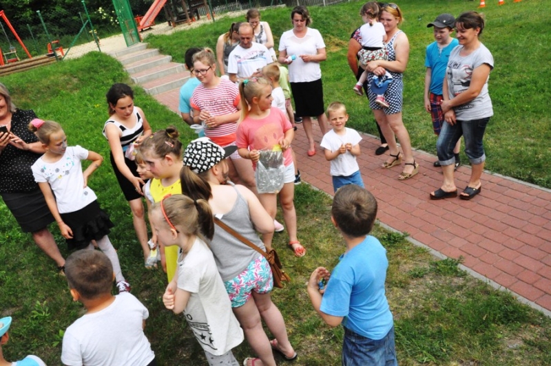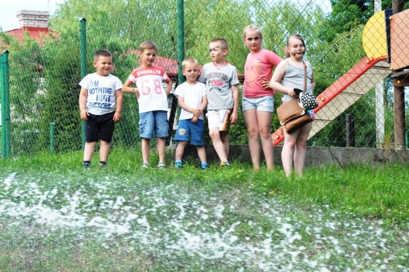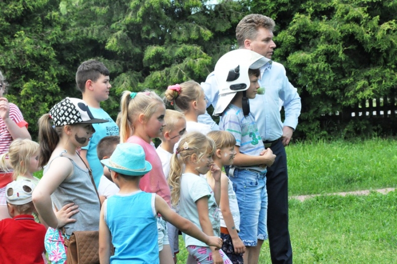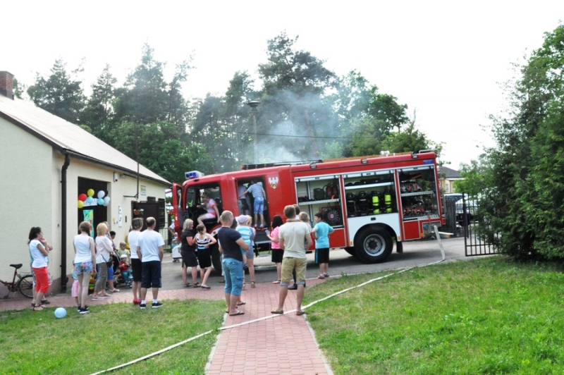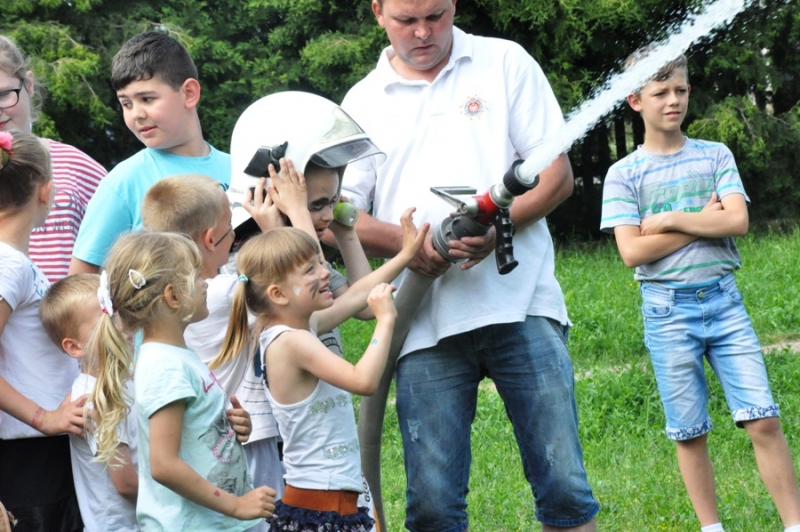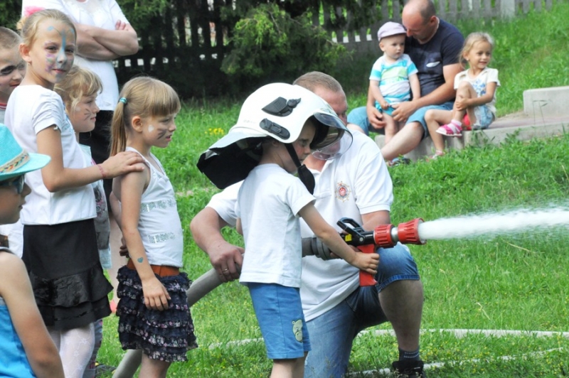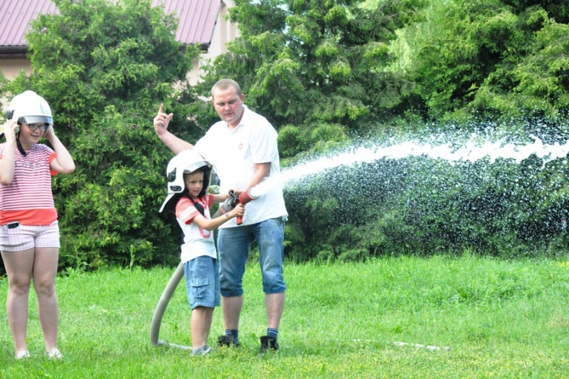 Dzięki temu dzieci dowiedziały się na czym polega praca strażaków, jakim sprzętem się posługują, jak zachować się w trakcie pożaru. Maluchy miały także okazję wcielić się w rolę strażaka posługując się prawdziwym wężem strażackim. Na koniec strażacy przygotowali jeszcze jedną niespodziankę – trochę wody dla ochłody! Ależ było radości. I oczywiście żaden Dzień Dziecka nie może obejść się bez upominków i życzeń. Tak więc każdy maluch otrzymał zabawkę, a w świetlicy na zmęczone pociechy czekał poczęstunek. Niedzielna impreza dostarczyła mnóstwo uśmiechu i emocji, oczywiście tych pozytywnych.
