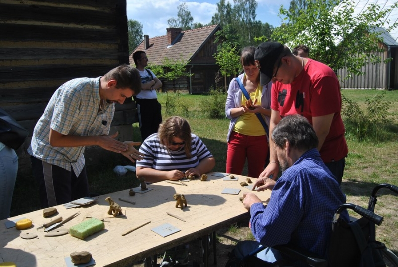 Budynki przedstawione zostały w ich naturalnych relacjach i środowisku podobnym do tego, które im kiedyś towarzyszyło. Uczestnicy WTZ zapoznali się również z pracownią garncarską, dowiadując się, jak działa koło garncarskie, jakie funkcje pełniły różnorodne naczynia gliniane oraz jak je dekorowano. Każdy samodzielnie utoczył na kole garncarskim naczynie.