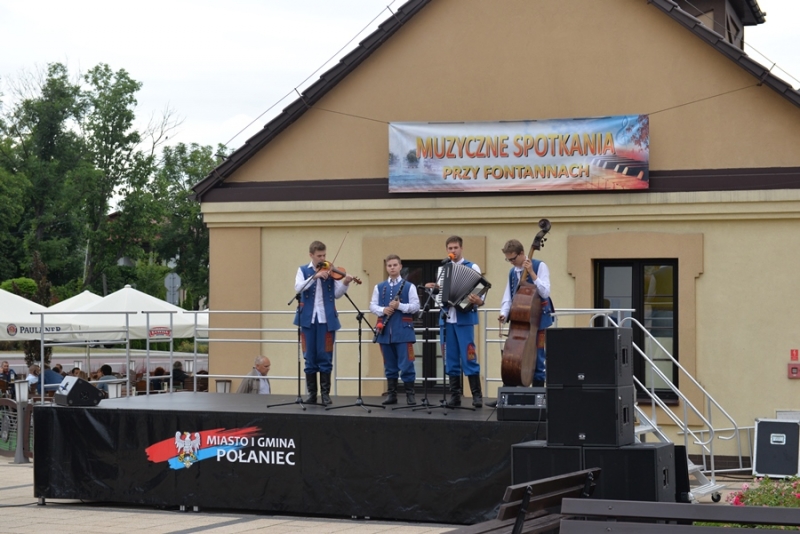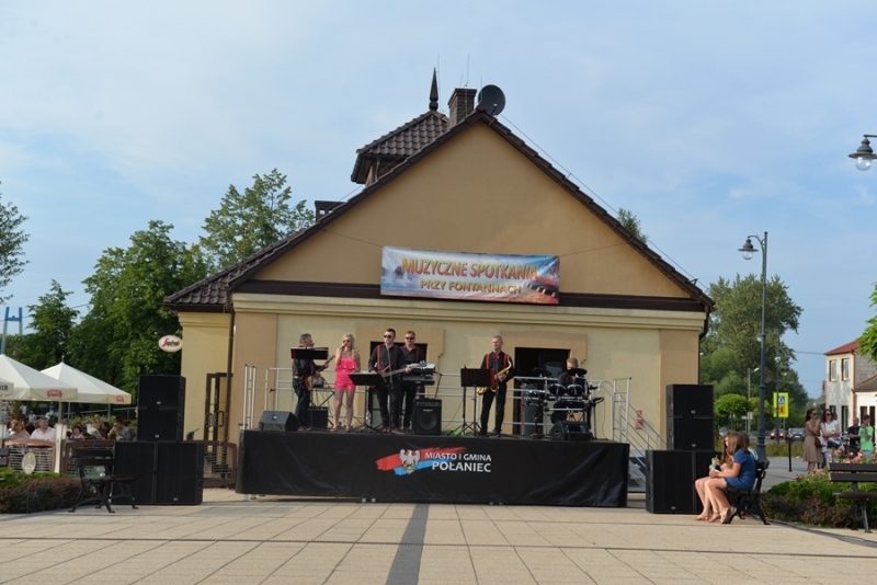 Niezwykle barwny i folkowo energetyczny występ naszych sąsiadów zza Wisły spotkał się z bardzo ciepłym przyjęciem i uznaniem połanieckiej publiczności. Biesiadny klimat pasujący do letnich festynów stworzyły muzycznie wokalistki z zespołu Radius i Sidus z Centrum Kultury i Sztuki a legancję w tańcu zaprezentowały tancerki z zespołów Digress również z Centrm Kultury i Sztuki. Najgorętsze, polskie przeboje muzyki pop i dance zagrał i wyśpiewał zespół Kometa. Lipcowe spotkania zakończyło disco polowe szaleństwo ze świętokrzyskim zespołem FOX. "Muzyczne spotkania przy fontannach" od kilku lat tworzą niepowtarzalny klimat, który doceniają mieszkańcy Połańca i przyjezdni goście. Cieszymy się, że mamy wspaniałą publiczność, która każde niedzielne popołudnie rezerwuje na spotkanie z muzyką i sztuką w plenerowej formie. Składamy serdeczne podziękowania wszystkim dotychczas występującym artystom za współpracę i promocję swojej twórczości podczas spotkań przy fontannach. Przed nami kolejne spotkania i moc muzycznych wrażeń...... Bądźcie z nami.
