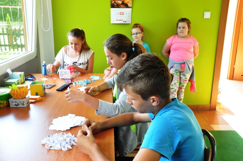 Placówka ogólnodostępna, jest miejscem do którego przychodzą dzieci, młodzież i dorośli aby aktywnie odpocząć. Świetlica udostępnia różnego rodzaju gry planszowe, można skorzystać ze stołu tenisa stołowego, posłuchać muzyki, poczytać książki, zgodnie z hasłem „baw się i ucz”. Wszystkie zajęcia odbywają się pod czujnym okiem opiekunki. Jedną z form organizacji wolnego czasu są zajęcia plastyczno-techniczne. Dzieci wykonują niezwykle pracochłonne, ale i niezwykle efektowne prace z origami- fantazje z papieru. Jak sami podopieczni mówią, jest to zajęcie nie tylko przyjemne, ale mocno wciągające. Wystarczy użyć wyobraźni, by wyczarować tak przepiękne prace. Uwagę przykuwa duży łabędź, misternie wykonane kwiatuszki, kompozycje, gwiazdy, bombki, które mogłyby przyozdobić niejedno pomieszczenie. Warto dodać, że tego typu zajęcia wpływają korzystnie na rozwój dzieci. Rozwijają bowiem sprawność manualną, ćwiczą koncentrację, rozbudzają wyobraźnię, uczą wytrwałości.