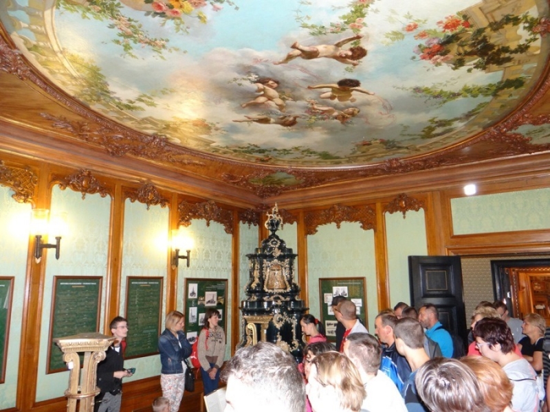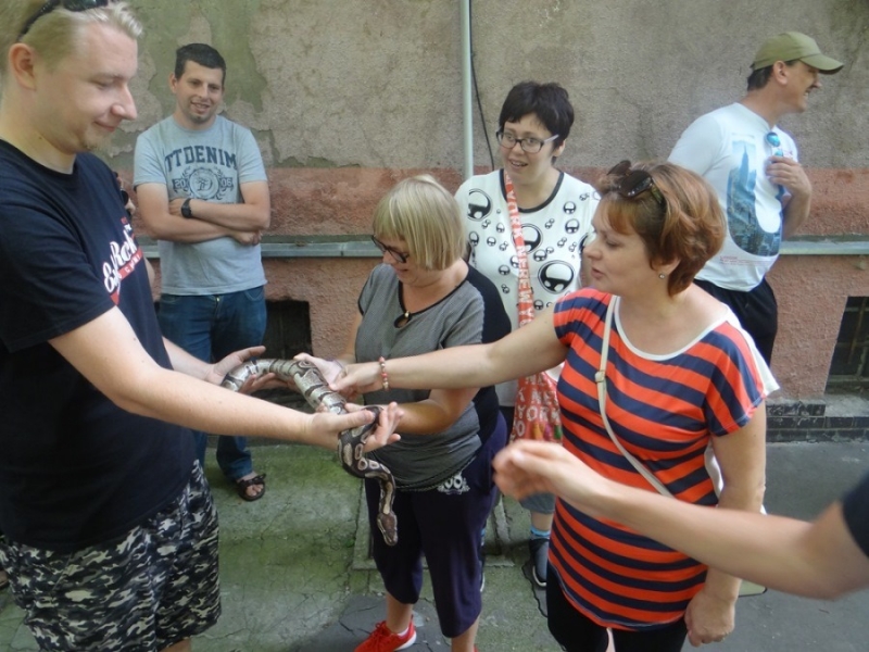 Drugi dzień zaczęliśmy od zwiedzania Łodzi z Panią Anią- przewodnikiem, która w sposób niezwykle interesujący przedstawiła historię i topografię miasta. Zabrała nas w miejsce znane i bardzo piękne, jakim jest park Źródliska, który jest najstarszym łódzkim parkiem. W konkursie organizowanym przez firmę ogrodniczą Briggs&Stratton w grudniu 2007r., Źródliska zostały ogłoszone najpiękniejszym parkiem w Polsce i piątym pod względem urody w Europie. Następnie przeszliśmy do Pałacu Scheiblera, który od trzech dekad jest siedzibą Muzeum Kinematografii-jednym z najczęściej filmowanych obiektów w Łodzi. Powstało tu blisko 30 filmów fabularnych, seriali i spektakli teatralnych, nie licząc etiud realizowanych przez studentów znajdującej się po sąsiedzku Szkoły Filmowej. Ostatnią dużą produkcja, jaka powstawała w Muzeum był serial Komisarz Alex. Nasi podopieczni zwiedzili również Muzeum Fabryki – muzeum przy ul. Drewnowskiej w Łodzi (na terenie CH „Manufaktura”), prezentujące historię kompleksu fabryczno-mieszkalnego Izraela Poznańskiego, który w latach 2002–2006 został przekształcony w Centrum Handlowe „Manufaktura”. Dawne imperium fabrykanta składało się z budynków przemysłowych, domów dla robotników, szpitala, kościoła oraz pałacu fabrykanckiego, tworząc „miasto w mieście”. Każdy budynek został zaprojektowany z dbałością o detale i architektoniczną równowagę. Majestatyczne hale produkcyjne, stanowiące obecną „Manufakturę”, robią do dziś ogromne wrażenie. Kreację ekspozycji we wnętrzach Muzeum Fabryki zaprojektował Mirosław Nizio, który także współtworzył Muzeum Powstania Warszawskiego. Muzeum Fabryki jest jedną z nielicznych placówek muzealnych w Polsce, gdzie możliwe jest fotografowanie obiektów. Mieliśmy również przyjemność uczestniczenia w zajęciach „TKANINA I CO DALEJ ?”, warsztat skupiający uwagę na zagadnieniu wykańczania tkaniny. Każdy uczestnik projektował wzór, według którego wykonywali stempel służący do zadrukowania fragmentu bawełnianej tkaniny. Ostatni dzień to zwiedzanie ZOO - Miejskiego Ogrodu Zoologicznego, założonego w 1938 roku. Ogród jako jedyny w Polsce prezentuje zagrożone wyginięciem lwy azjatyckie.