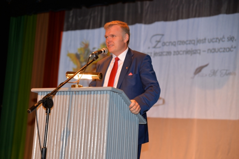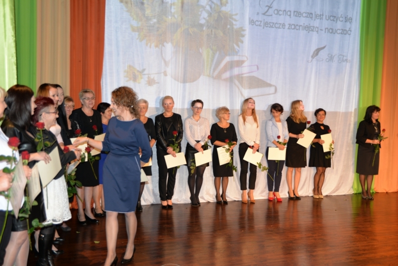 Oficjalnego powitania dokonał burmistrz Miasta i Gminy Połaniec – Jacek Tarnowski dziękując każdemu kto przyczynia się do rozwoju oświaty i wychowania, zaproszonym gościom, lokalnym przedstawicielom samorządu, a zwłaszcza całemu gronu pedagogicznemu za kształtowanie ludzkich charakterów od podstaw, składając hołd za ciężką pracę nauczycielom, pracownikom oświaty z życzeniami dalszej, owocnej i przynoszącej wiele satysfakcji pracy połączonej z wysokimi wynikami, życzenia i podziękowania nauczycielom emerytom. Następnie Radzie Rodziców, Związkom Nauczycielstwa Polskiego, poszczególnym jednostkom wspierającym oświatę. W poszczególnych przemówieniach górowały słowa podziękowań nauczycielom i pracownikom szkół za trud, jaki każdego dnia wkładają w proces nauki oraz wychowania dzieci i młodzieży. Padały także zapewnienia, że świadomość, jak ważna jest edukacja dla zrównoważonego rozwoju gminy, nadal będą czynione starania, by połanieccy uczniowie, pedagodzy i pracownicy szkół zmagali się ze swymi zadaniami w jak najlepszych warunkach. Po przemówieniach przyszedł czas na wyróżnienia dla tych nauczycieli i pracowników placówek oświatowych, którzy osiągnęli w swej pracy największe sukcesy.