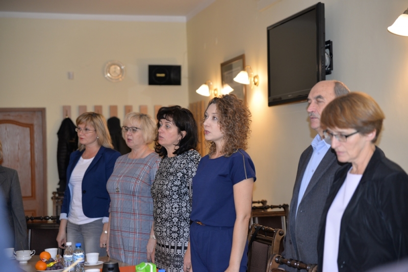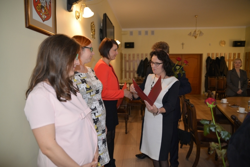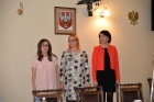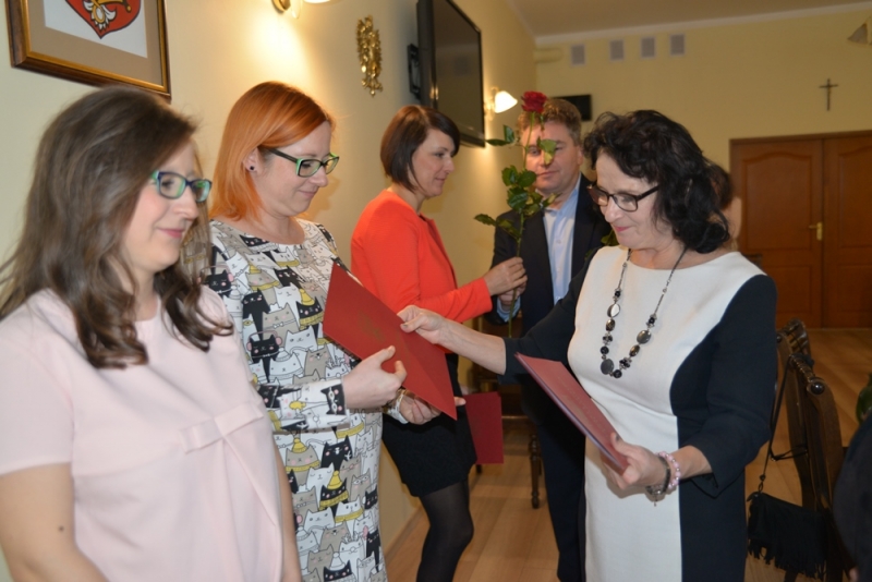 Uroczyste spotkanie otworzyła pani Jadwiga Krala- dyrektor Zespołu Ekonomiczno-Administracyjnego Oświaty i Wychowania, która z dumą mówiła o mianowanych nauczycielkach, podkreślając jak wspaniale zaprezentowały się na egzaminach, upewniając zebranych w przekonaniu, że są to osoby odpowiednie do pełnienia funkcji nauczyciela. "Pragnę zaznaczyć, że poziom wiedzy i sposób prezentacji dorobku zawodowego przez zdających stał na bardzo wysokim poziomie. Panie były doskonale przygotowane do egzaminu, a ich wypowiedzi były świadectwem dużego zaangażowania w pracę i chęć nieustannego doskonalenia swoich umiejętności" - mówiła dyrektor. Na uroczystości ślubowania obecna była skarbnik - Małgorzata Żugaj, wiceprzewodniczący - Zdzisław Kwiatkowski, dyrektorzy placówek. Po odśpiewaniu Hymnu Państwowego i złożeniu ślubowania, panie odebrały akt mianowania i symboliczną różę z rąk burmistrza – Jacka Tarnowskiego, wiceprzewodniczącego i dyrektorów placówek. Były osobiste gratulacje i życzenia od przedstawicieli samorządu i dyrekcji. Końcową część spotkania wypełniły rozmowy o planach w dalszym rozwoju połanieckiej oświaty, biorąc pod uwagę reformę.