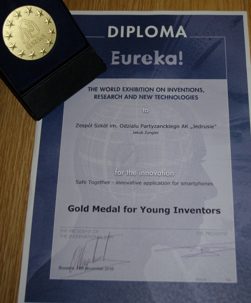 Jakub Zyngier za projekt "Razem bezpieczniej - innowacyjna aplikacja na smartfona" zdobył dla Zespołu Szkół w Połańcu ZŁOTY MEDAL w kategorii 'Młody Wynalazca" (do 26 lat - Kuba był najmłodszym uczestnikiem!).