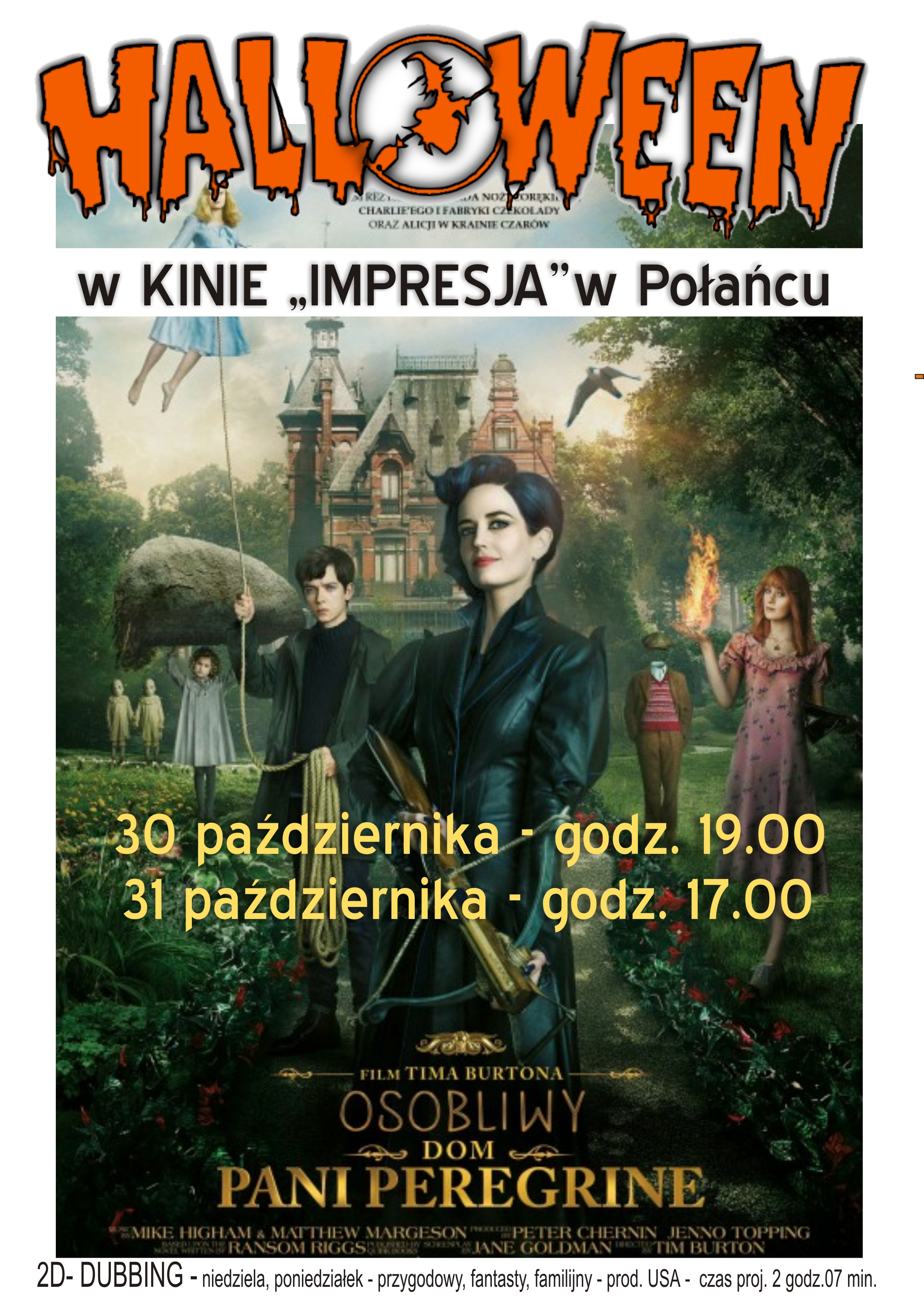 Zapraszamy na Halloween w Kinie "Impresja". W „Osobliwym domu pani Peregrine” poznacie niezwykłych mieszkańców i ich niesamowite moce...Film trzymający w napięciu dla dzieci i dorosłych z fantazją.... Nie może Ciebie zabraknąć.