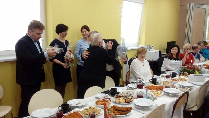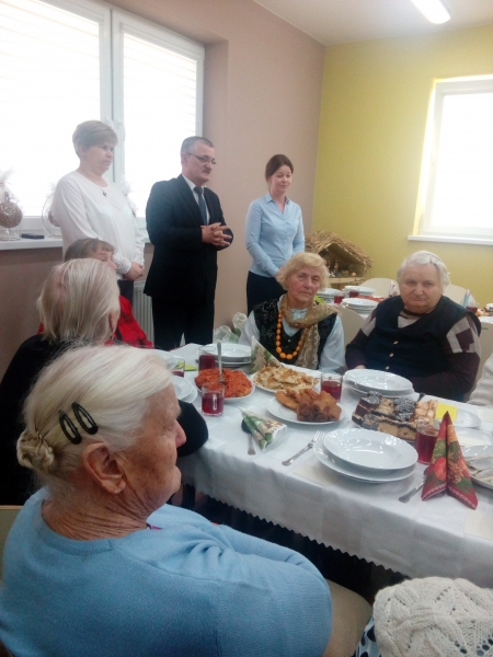 Z ciepłymi, świątecznymi życzeniami z okazji Świąt Bożego Narodzenia przybyli Burmistrz Połańca -Jacek Tarnowski, Przewodniczący Rady Miejskiej- Stanisław Lolo i Skarbnik Gminy - Małgorzata Żugaj oraz duchowni: ksiądz proboszcz Parafii Matki Bożej Wspomożenia Wiernych w Połańcu- ksiądz Witold Dobrzański oraz emerytowany ksiądz Antoni Obłozy, składając na ręce kierownik placówki – Anny Konat, pracowników i podopiecznych serdeczne życzenia - szczęścia i radości z przeżywania tych najpiękniejszych dni w roku, by Wigilia wniosła wiele refleksji, ciepła rodzinnego i spokoju.