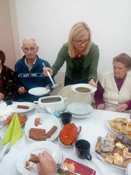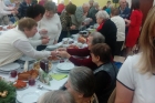 Zaproszeni goście wraz z kadrą ŚDS i podopiecznymi przy śpiewie kolęd i dobrym słowie życzeń zasiedli do stołu ze świątecznymi potrawami.