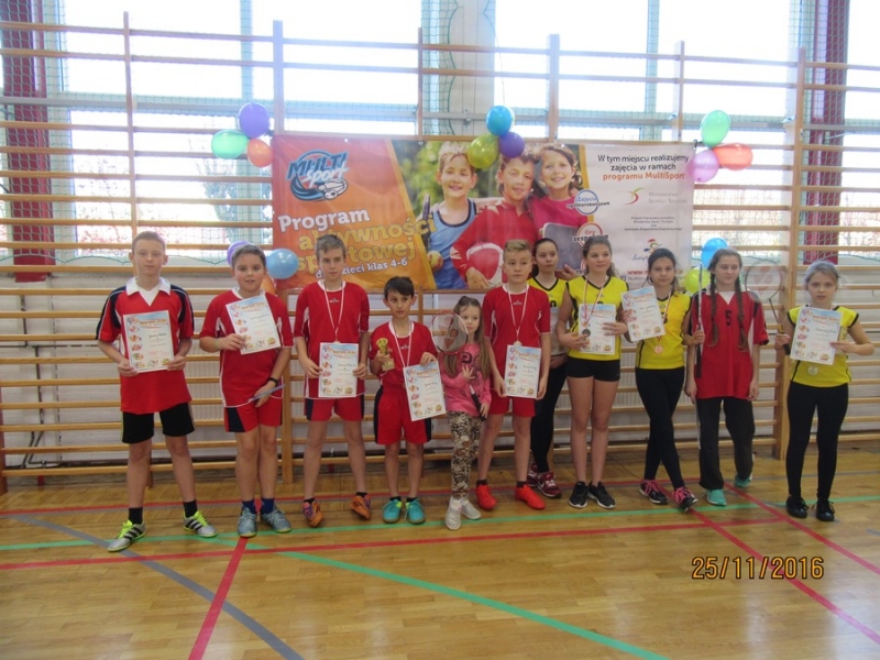 W turnieju wzięło udział 30 miłośników tej jakże ciekawej gry. W szranki stanęło 13 dziewcząt i 17 chłopców z klas VI. Łącznie w grach pojedynczych zawodnicy rozegrali 56 spotkań. Wśród dziewcząt i chłopców toczyła się zawzięta walka o awans do rundy finałowej. W kategorii dziewcząt pierwsze miejsce zajęła Aleksandra Switek, na drugim miejscu uplasowała się Eliza Bober, natomiast trzecie miejsce na podium wywalczyła Oliwia Jabłońska. W kategorii chłopców zwycięzcą został Jakub Krupa, drugie miejsce wywalczył Karol Durma, natomiast trzecie miejsce zdobył Łukasz Kasperek.