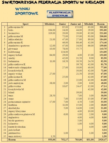 PODSUMOWANIE KLASYFIKACJI SPORTOWEJ KLUBÓW GMIN I POWIATÓW