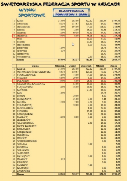 Dorobek Sportowy MKS „Czarni” Połaniec w minionym roku jest bardzo znaczący. W skali województwa na 95 punktujących Połaniec zajął 10 miejsce. Osiągnięte wyniki są efektem całorocznej pracy szkoleniowej i wychowawczej z młodzieżą. Składamy serdeczne gratulacje za wybitne dokonania i wyniki zawodnikom, którzy swoją postawą kształtują pozytywny wizerunek klubów oraz miasta.