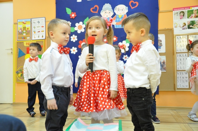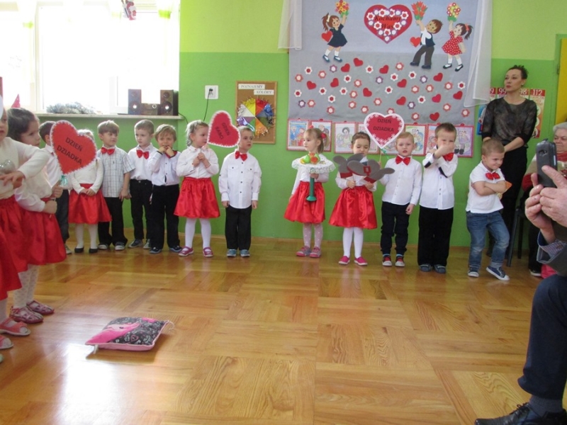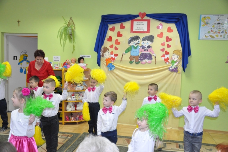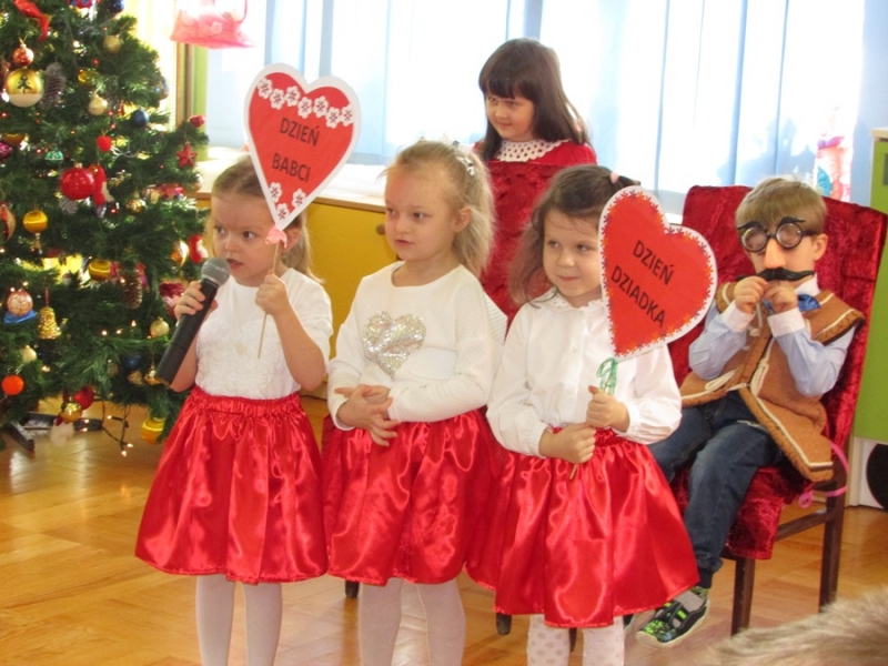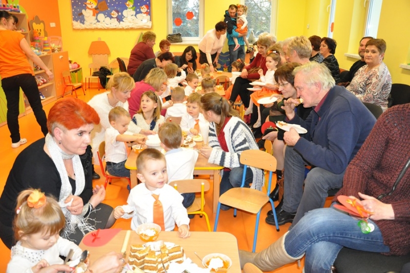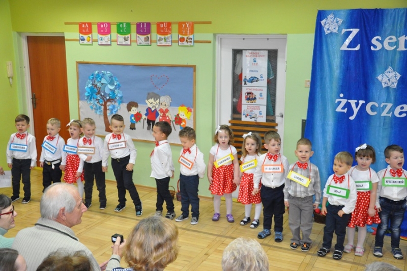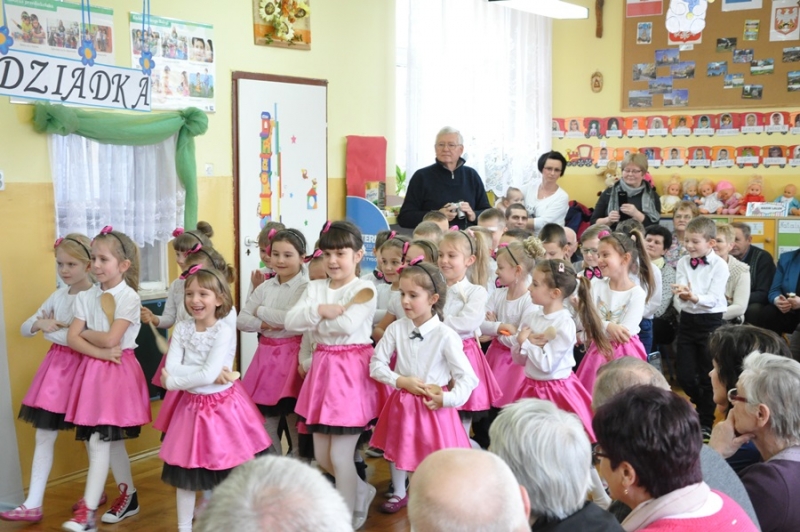 Licznie przybyli goście mogli z dumą podziwiać swoje pociechy. Dzieci podarowały swoim Babciom oraz Dziadkom upominki oraz laurki. Poprzez występy, przedszkolaki wyraziły wobec ukochanych Babć i Dziadków swoje podziękowania, miłość oraz szacunek. Szczęście i radość widniejące na twarzach przybyłych gości, były potwierdzeniem tego jak niezmiernie ważne są takie chwile spędzone wspólnie z pociechami. Atmosfera całej uroczystości była wspaniała, a podziękowaniom ze strony gości nie było końca. Po części artystycznej goście oraz dzieci zostali zaproszeni na przygotowany przez rodziców słodki poczęstunek.