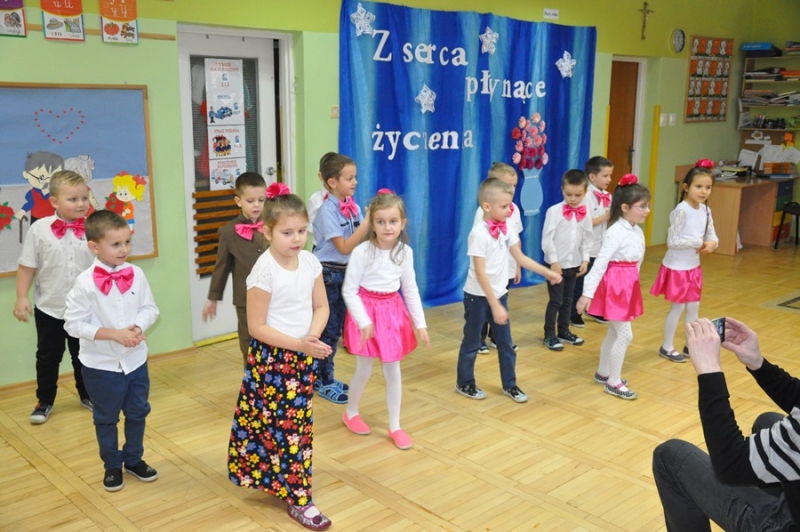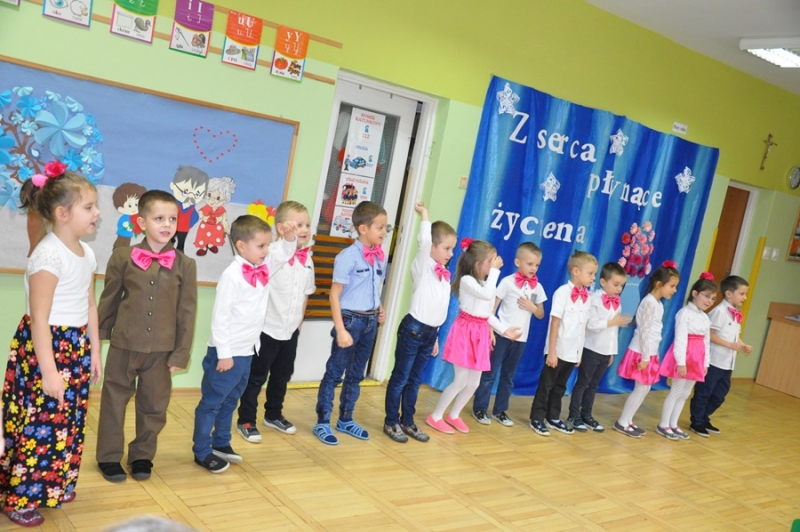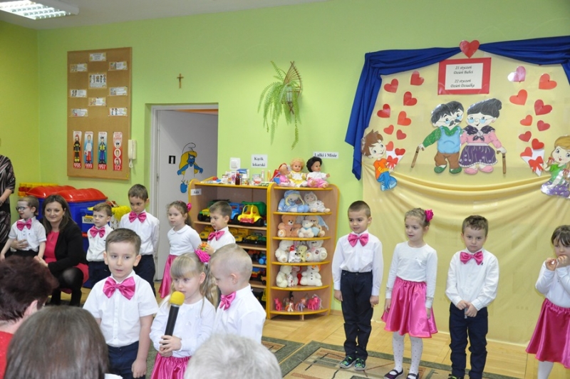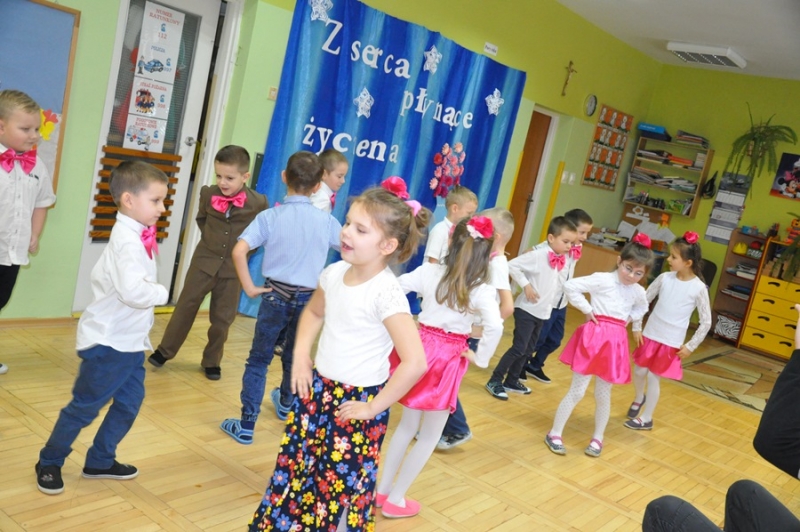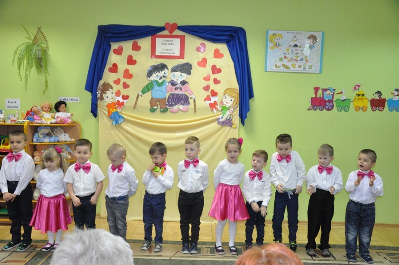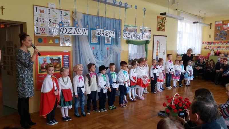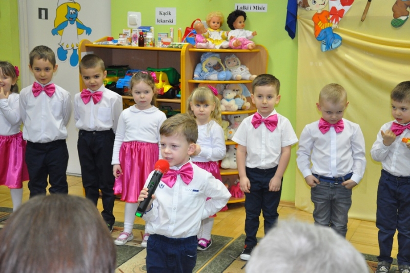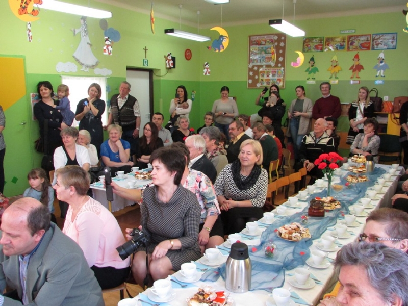 Licznie przybyli goście mogli z dumą podziwiać swoje pociechy. Dzieci podarowały swoim Babciom oraz Dziadkom upominki oraz laurki. Poprzez występy, przedszkolaki wyraziły wobec ukochanych Babć i Dziadków swoje podziękowania, miłość oraz szacunek. Szczęście i radość widniejące na twarzach przybyłych gości, były potwierdzeniem tego jak niezmiernie ważne są takie chwile spędzone wspólnie z pociechami. Atmosfera całej uroczystości była wspaniała, a podziękowaniom ze strony gości nie było końca. Po części artystycznej goście oraz dzieci zostali zaproszeni na przygotowany przez rodziców słodki poczęstunek.