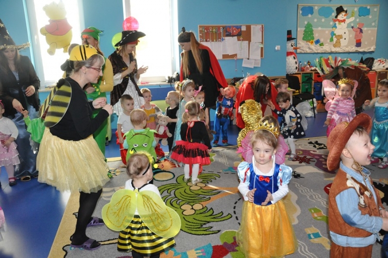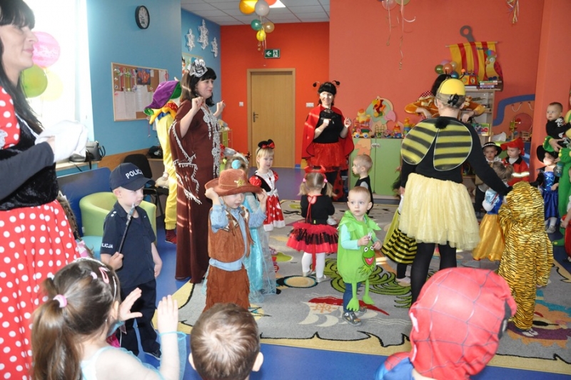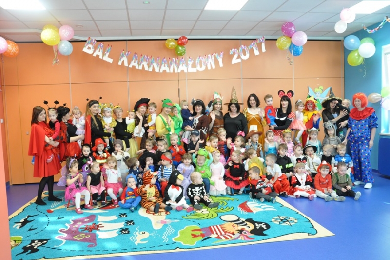 „Jest karnawał, w karnawale wszyscy urządzają bale”– i w naszym Żłobku „Kraina Malucha” dzieci z grup „Rybki”, „Żabki” i „Smerfy” wraz z opiekunkami poczyniły przygotowania do balu karnawałowego. W czwartek 26 stycznia 2017r. sala zabaw nowo otwartej grupy „Rybki” wyglądała bajecznie i kolorowo. Ponieważ był to bal, wszystkie dzieci i opiekunki przebrali się w bajeczne postaci. Na parkiet wyszły więc księżniczki, pszczółki, wróżki, biedronki, różne zabawne zwierzątka, ale także strażacy, policjanci, Supermeni, Batmani, Spidermani i wiele, wiele innych. W repertuarze muzycznym znalazły się znane szlagiery oraz inne utwory przy których dzieci bawią się na co dzień jak m.in. „Jedzie pociąg z daleka”, „Kaczuchy” itp. Były też znane hity radiowe takie jak „Oczy zielone…” W trakcie zabawy zmęczeni, ale szczęśliwi balowicze mogli liczyć na „karnawałowy” poczęstunek.