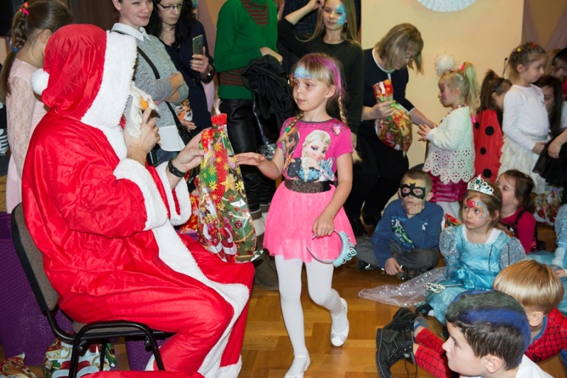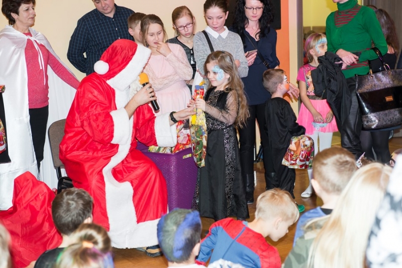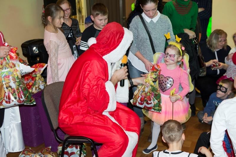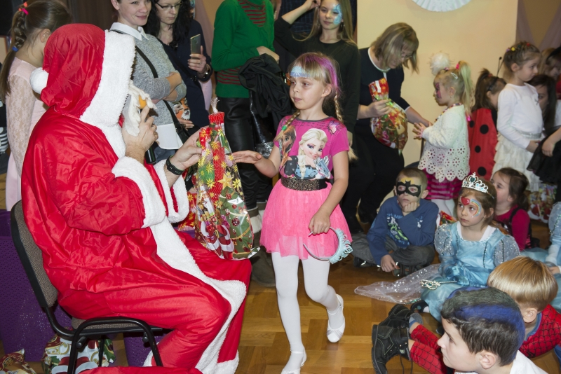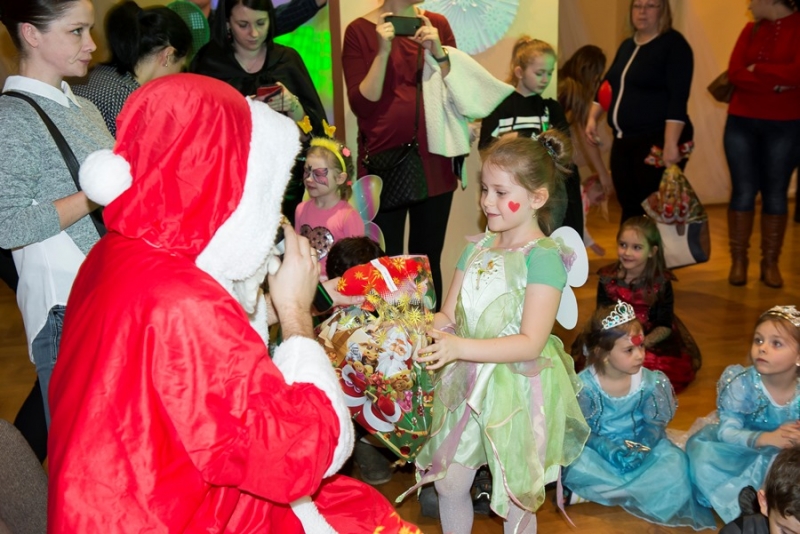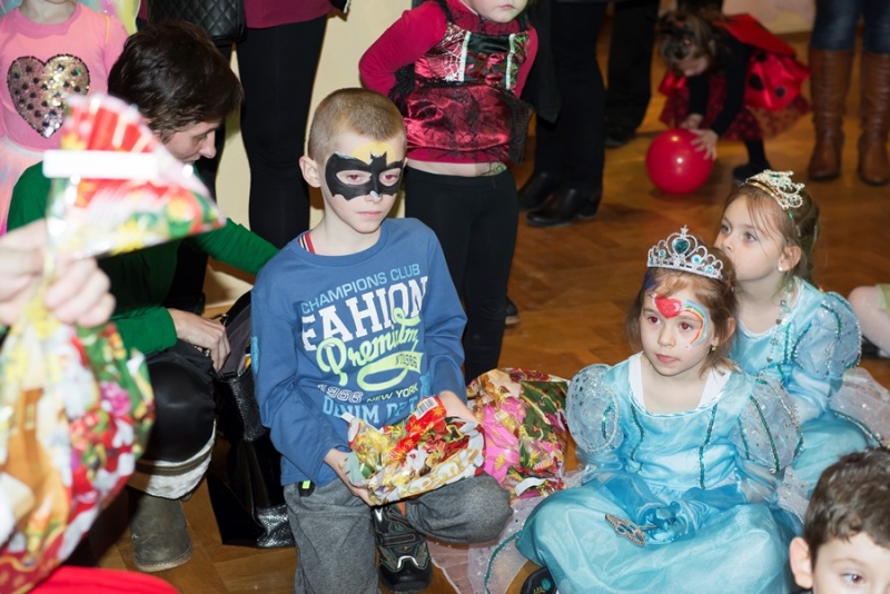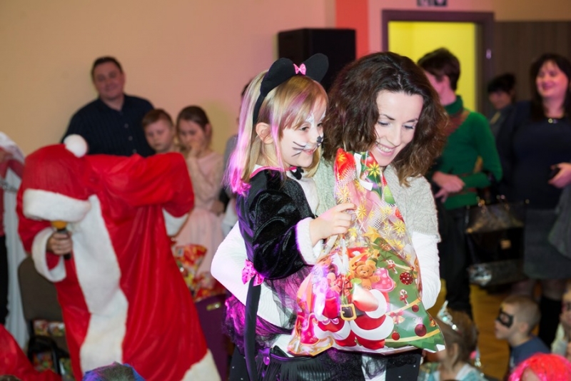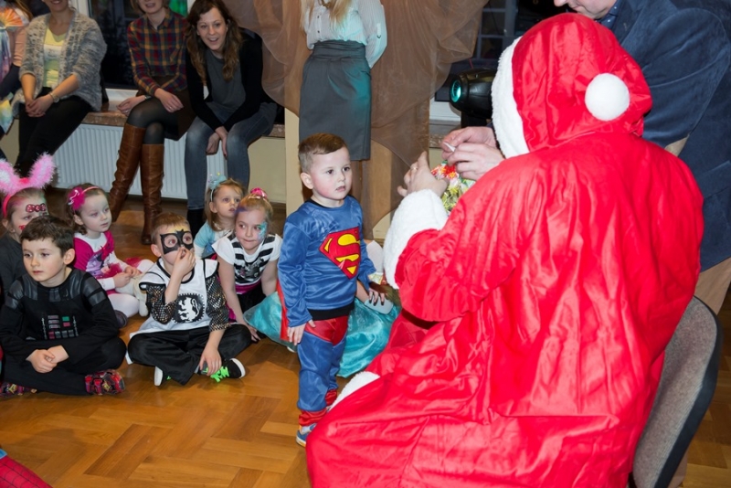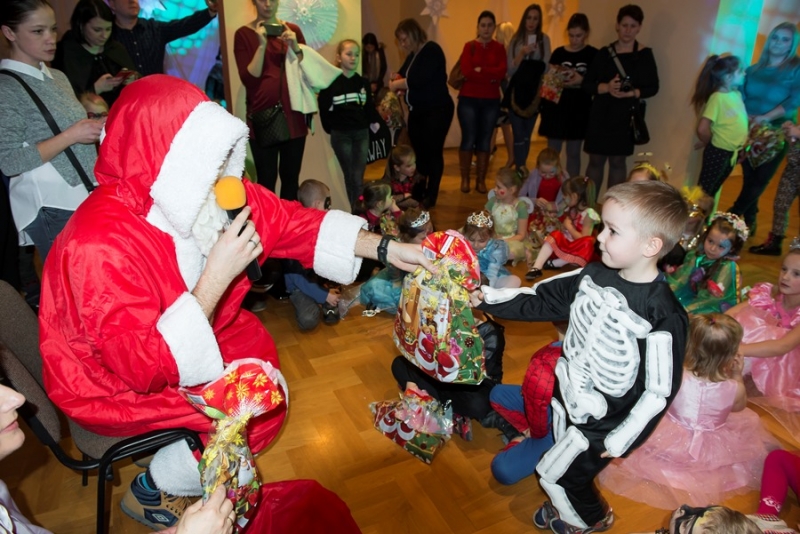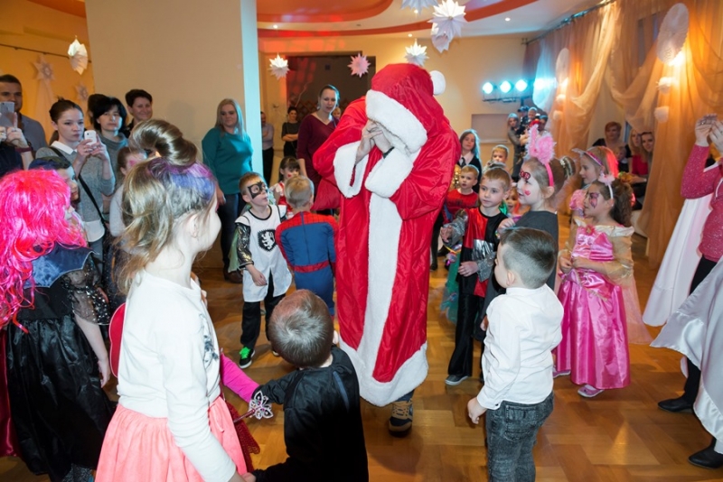Zimowy wystrój sali w połączeniu z kolorowymi światłami był niezwykłym tłem dla mega zabawy. Punktem kulminacyjnym balu było pojawienie się Świętego Mikołaja z prezentami. Każde dziecko otrzymało upominek ufundowany przez Miasto i Gminę Połaniec. Było gwarno, wesoło z uśmiechem i żartami. Nic dziwnego, że po wyczerpujących tanecznych wygibasach słodki pączek smakował wszystkim dzieciakom znakomicie. A gdy Bal Karnawałowy dobiegł końca ze smutkiem, ale i nadzieją na kolejne spotkanie opuszczali salę najmłodsi uczestnicy....... jeszcze tylko machanie rączkami i słodkie pa pa.