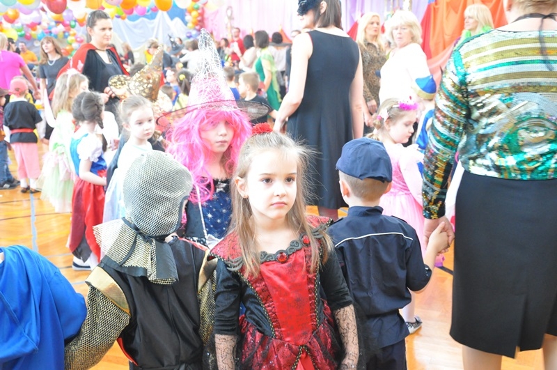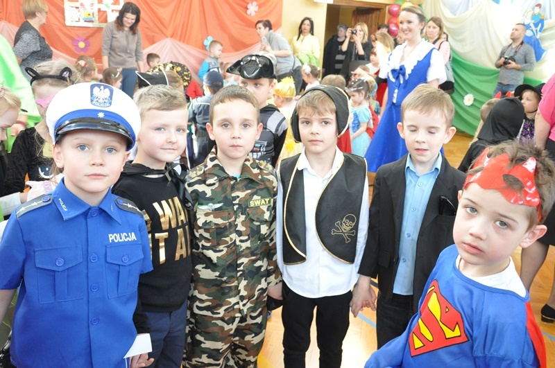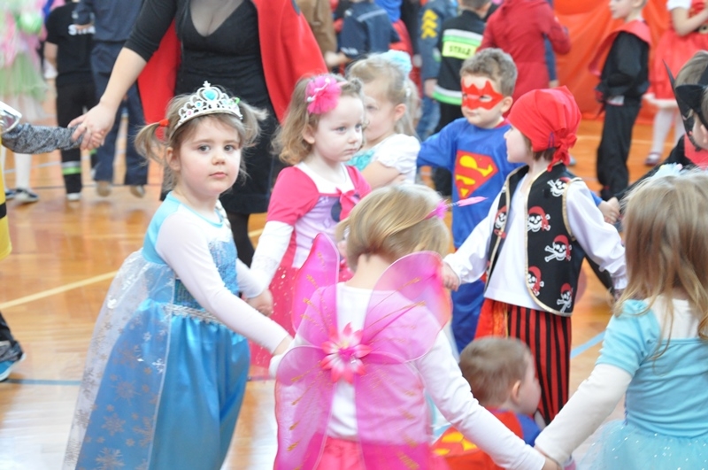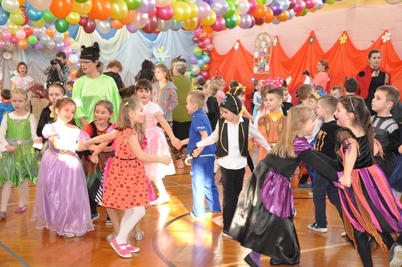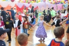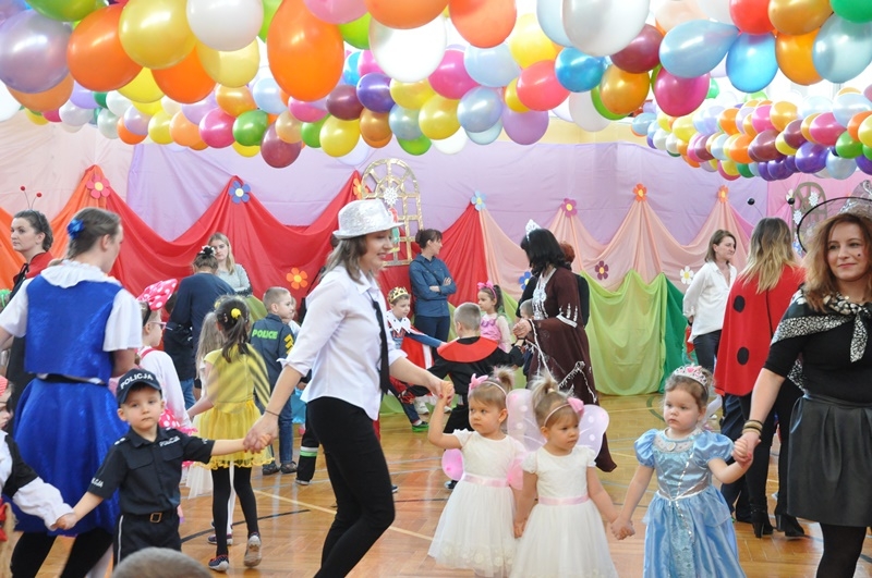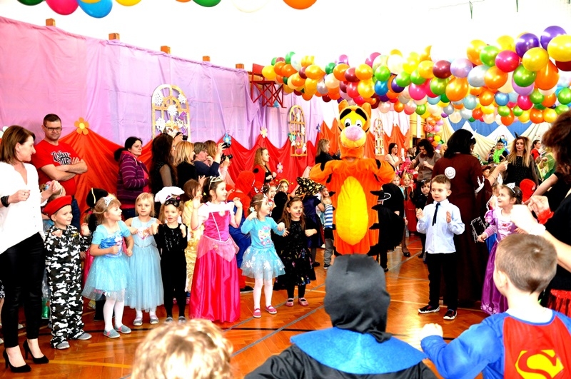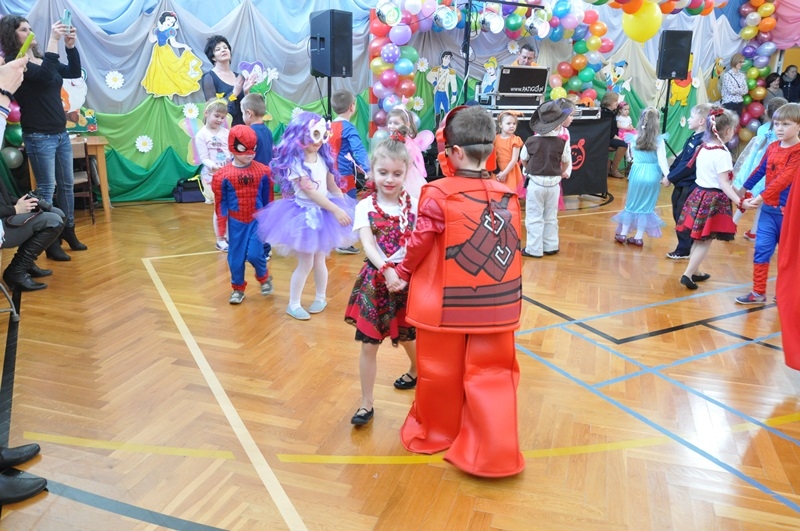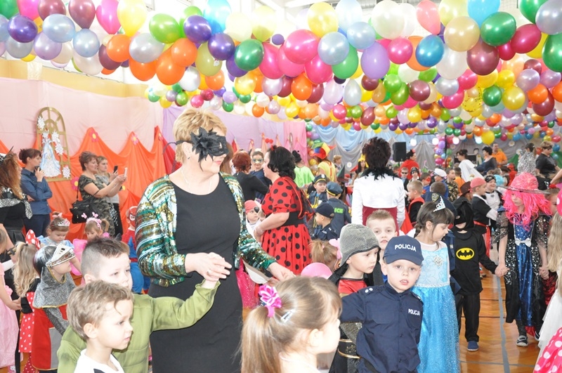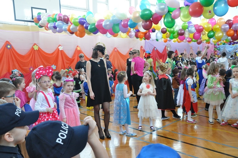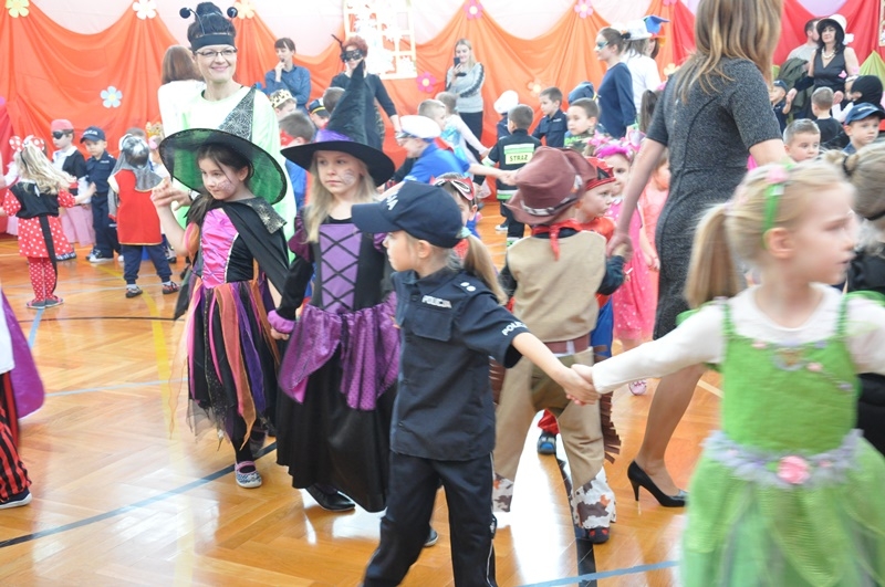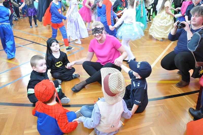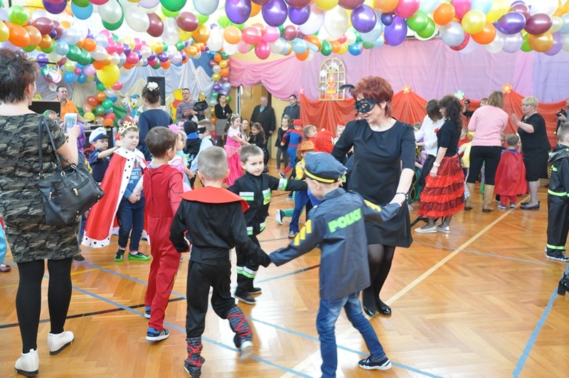 Już pierwsze dźwięki muzycznych hitów pod rozrywkowym okiem Wodzireja z zespołu „Patigo” tak porwały do tańca wszystkie księżniczki, kowbojów, wróżki, zwierzątka…….., że nawet chłopcy przebrani za policjantów (a mundur zobowiązuje) oddali się wesołym pląsom. Nie zabrakło również gościa specjalnego, okazał się nim przyjaciel Kubusia Puchatka - rozbrykany Tygrysek, który w mgnieniu oka przemknął po balowej sali witając się ze wszystkimi przedszkolakami. Tańce – wywijańce wprawiły wszystkich we wspaniały nastrój, na każdej dziecięcej buzi widać było radosne, promienne uśmiechy. Konkursy przygotowane i prowadzone przez Pana Wodzireja oraz sesja zdjęciowa pozwalały złapać oddech i dawały chwilę wytchnienia. Również słodki poczęstunek w postaci oponków i herbatki uczestnicy balu zjedli na wielkiej stołówce, co także okazało się wspaniałą atrakcją. Takie bale mogłyby się odbywać nie tylko w karnawale, więc: Niechaj krzyczą z lewa, z prawa – karnawał w przedszkolu – Super Zabawa!!!!
