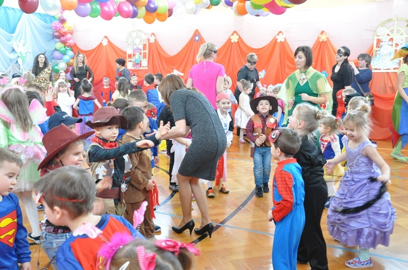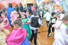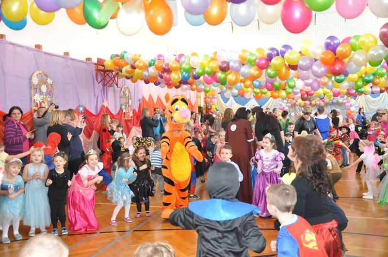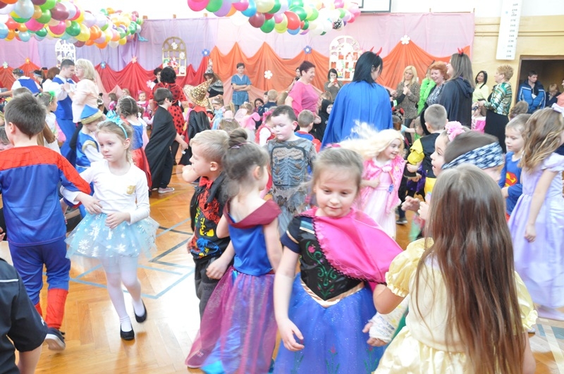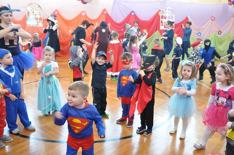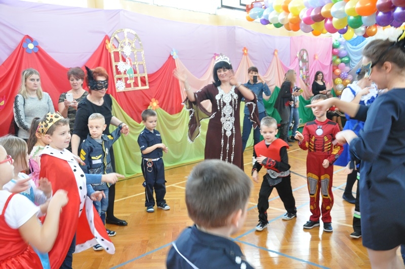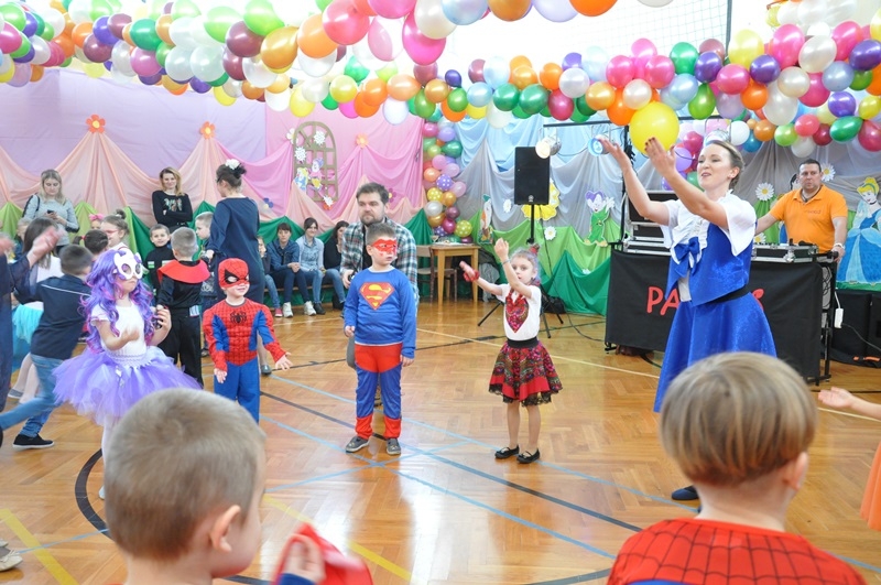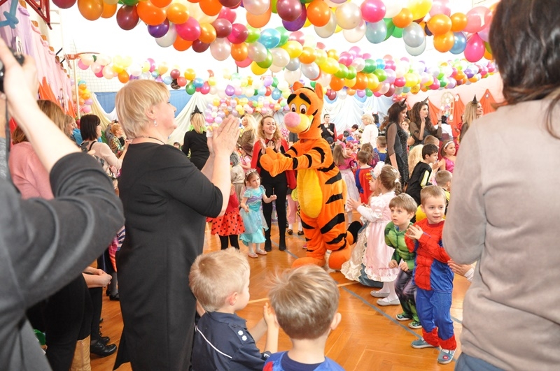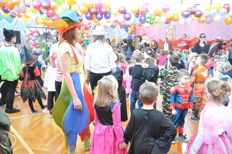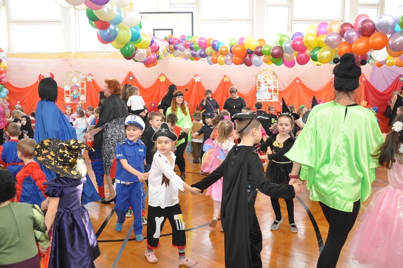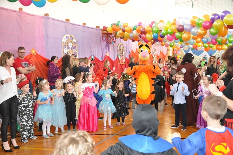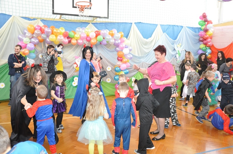 Już pierwsze dźwięki muzycznych hitów pod rozrywkowym okiem Wodzireja z zespołu „Patigo” tak porwały do tańca wszystkie księżniczki, kowbojów, wróżki, zwierzątka…….., że nawet chłopcy przebrani za policjantów (a mundur zobowiązuje) oddali się wesołym pląsom. Nie zabrakło również gościa specjalnego, okazał się nim przyjaciel Kubusia Puchatka - rozbrykany Tygrysek, który w mgnieniu oka przemknął po balowej sali witając się ze wszystkimi przedszkolakami. Tańce – wywijańce wprawiły wszystkich we wspaniały nastrój, na każdej dziecięcej buzi widać było radosne, promienne uśmiechy. Konkursy przygotowane i prowadzone przez Pana Wodzireja oraz sesja zdjęciowa pozwalały złapać oddech i dawały chwilę wytchnienia. Również słodki poczęstunek w postaci oponków i herbatki uczestnicy balu zjedli na wielkiej stołówce, co także okazało się wspaniałą atrakcją. Takie bale mogłyby się odbywać nie tylko w karnawale, więc: Niechaj krzyczą z lewa, z prawa – karnawał w przedszkolu – Super Zabawa!!!!