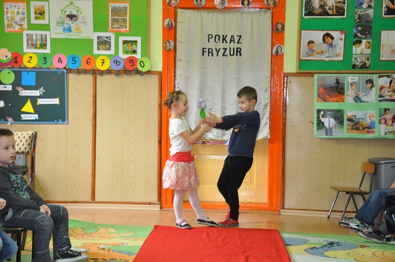 Dnia 8 marca w Dzień Kobiet odbył się Festiwal fryzur. Rodzice, nauczycielki i panie woźne pomogli przygotować wszystkim dzieciom piękne fryzury. Każdy przedszkolak miał możliwość przejść się po czerwonym dywanie i pokazać swoje uczesanie. Fryzury były bardzo ciekawe – od prostych, tradycyjnych po niezwykle oryginalne upięcia. Pokaz cieszył się ogromnym zainteresowaniem a wszystkich modeli nagrodzono gromkimi brawami. Serdeczne podziękowania kierujemy do mamy, Pani Moniki Antonik oraz Pani Agnieszki Adamczak, które przybliżyły dzieciom zawód fryzjerki oraz wyczarowały piękne fryzury dzieciom i paniom.