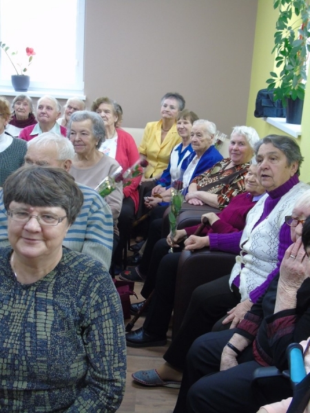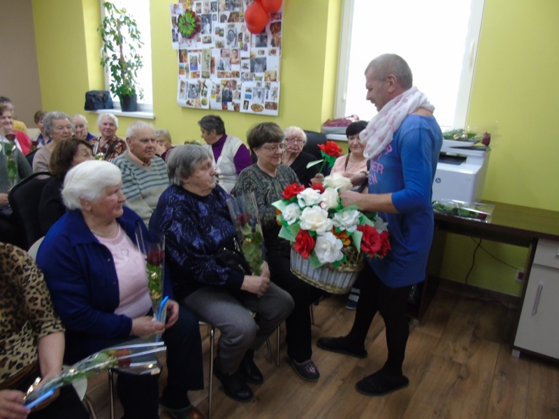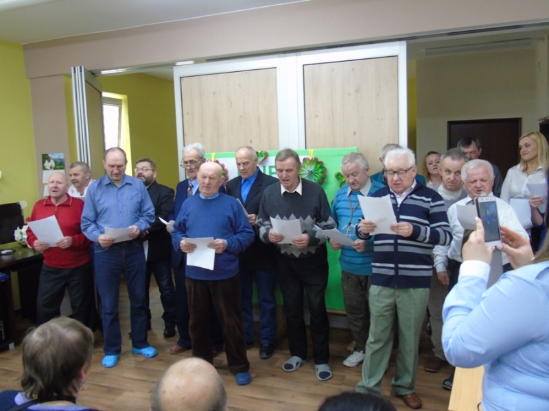 Uczestnicy pod okiem instruktorów terapii zajęciowej przygotowali występ teatralno – muzyczny. Na początku przedstawili krótkie wiersze i życzenia. Następnie odegrali w humorystyczny sposób scenkę o zapracowanych kobietach. Wszystkim paniom bardzo podobali się panowie przebrani w stroje kobiece. Na koniec wszyscy mężczyźni zaśpiewali piosenkę pt. "Serce w plecaku".