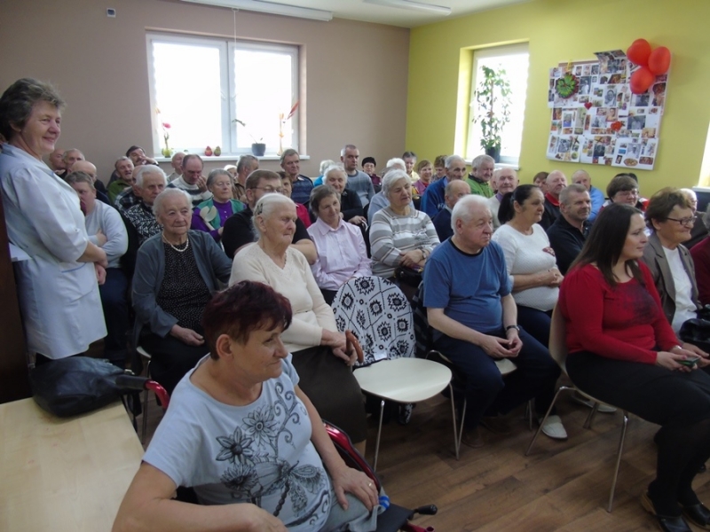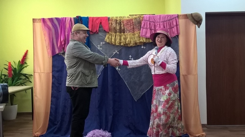 We wtorek 21 marca 2017 roku do ŚDS przyjechali aktorzy grupy teatralnej MALU z Krakowa ze spektaklem pt. „Kobietki”. Była to inscenizacja na temat relacji damsko-męskich przedstawione w bardzo groteskowy sposób. Zaprezentowane zostały dialogi pomiędzy Panią Różą Skrzypiczeszczakową – artystką sceniczną a jej początkującym w branży pracownikiem obsługi technicznej – Panem Aleksandrem Wielkim. Dwoje bohaterów przedstawienia, przekomarzało się udowadniając swoje racje. Komentarzem do tych dialogów były popularne piosenki, które również chętnie śpiewali nasi podopieczni. Mieliśmy okazję usłyszeć takie szlagiery jak: „Ach jak przyjemnie”, „Serduszko puka w rytmie cza, cza”, „W siną dal”, „Siedzieliśmy na dachu” Sławy Przybylskiej oraz stare polskie tango „Graj skrzypku, graj”. Publiczność była bardzo zadowolona co widać na fotografiach upamiętniających to wydarzenie.