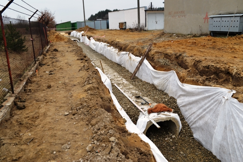 Prace na ul. Lipowej – utwardzenie powierzchni, odwodnienie i przebudowa instalacji oświetleniowej przybrały tempa. Fachowcy wzięli się za utwardzenie terenu nawierzchnią z kostki betonowej oraz budowę systemu odwodnienia składającego się z ujmujących spływające powierzchniowo wody opadowe i roztopowe wpustów żeliwnych wyposażonych w system oczyszczający i studni chłonnych oraz ciągów komór drenażowych, a także drenażu rurowego wraz z przykanalikami. W ramach zadania przebudowana będzie ponadto zalicznikowa instalacja oświetleniowa jako podziemna linia kablowa zasilania elektrycznego zasilająca 20 słupów oświetleniowych.