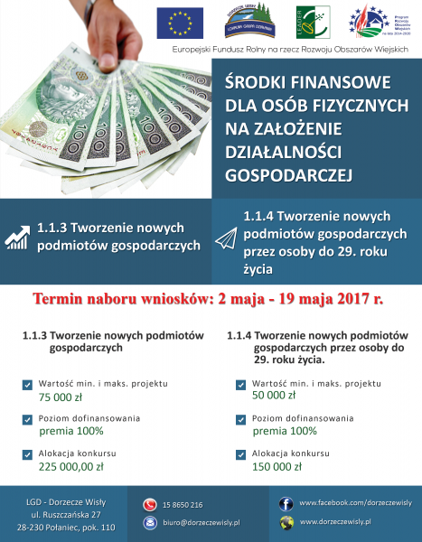 - wsparcie finansowe na założenie działalnościi gospodarczej: 21 000,00 zł,