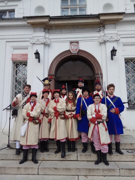 Wsobotę 22 kwietnia w Raszynie miał miejsce coroczny Piknik Historyczny upamiętniający bitwę stoczoną tam w czasie wojny polsko – austriackiej w 1809 r. Mając na uwadze trwający Rok Kościuszkowski, stowarzyszenie „Projekt Raszyn” i pani prezes Dorota Betko, zaprosili Towarzystwo Kościuszkowskie wraz z grupą połanieckiej młodzieży do udziału w nim oraz prezentację inscenizacji „Insurekcja 1794 w pigułce”. Bardzo ładnie prezentowały się nasze sukmany wśród mundurów wojsk z czasów Księstwa Warszawskiego, które również brały udział w imprezie, prowadząc ćwiczenia na dziedzińcu Pałacu w Falentach.