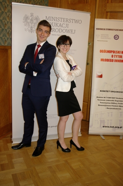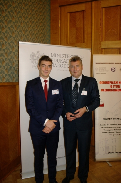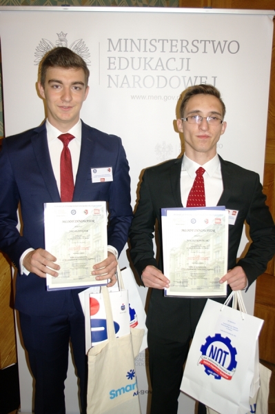Ogólnopolski Konkurs Młody Innowator - III miejsce w Polsce i tytuł laureata: Maciek Kowalski i Kuba Zyngier w Ministerstwie Edukacji na uroczystości wręczenia nagród dla Innowacyjnego duetu Technikum + Liceum Połaniec.