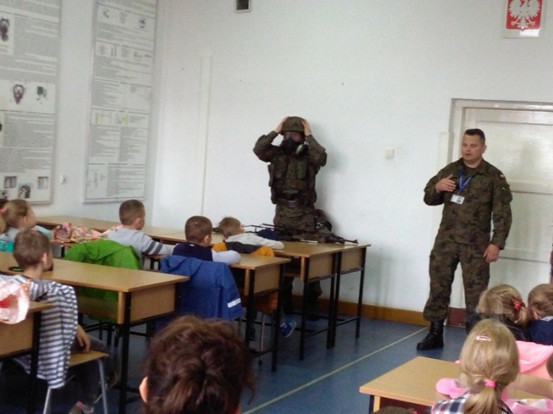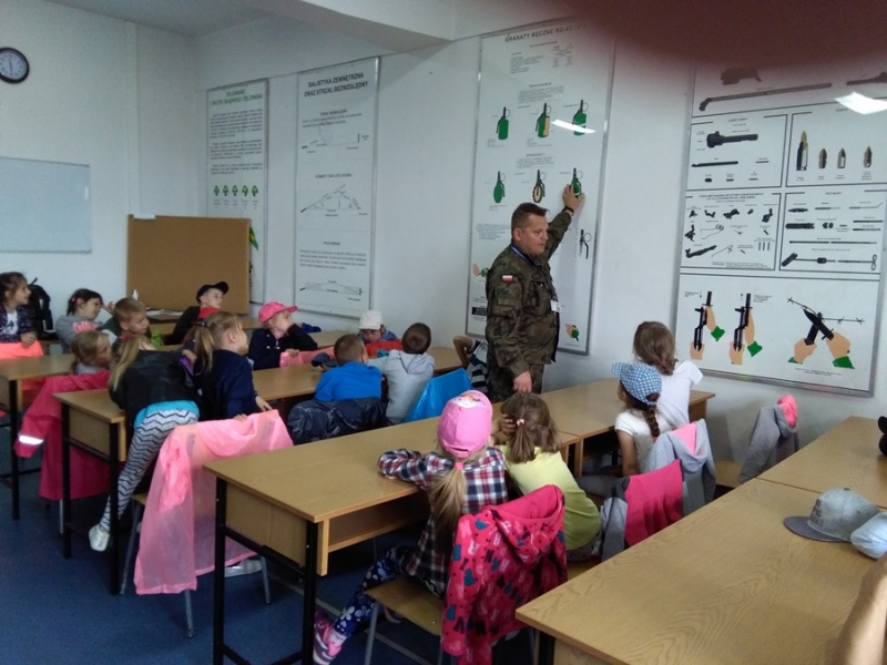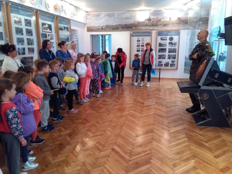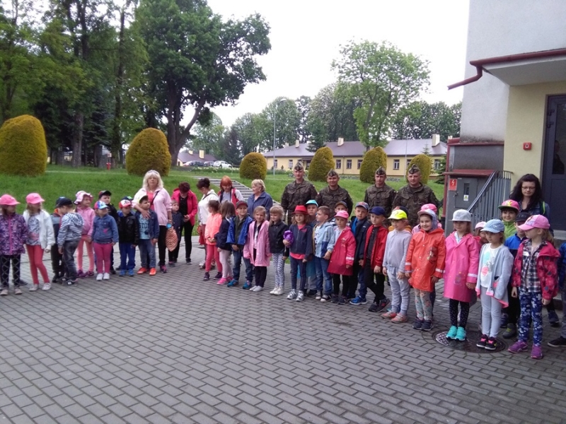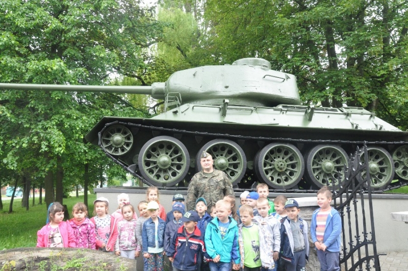 Realizując Roczny Plan Pracy Przedszkola „Wszyscy dla wszystkich – poznajemy zawody” – tym razem poznawaliśmy zawód żołnierza. W środę 23.05.2017 roku przedszkolaki z grupy „Biedronki”, „Smerfy”, „Koniczynki”, „Pszczółki”, wraz z opiekunami, dzięki rodzicowi K. Jońcy oraz uprzejmości dowództwa odwiedziły Jednostkę Wojskową w Sandomierzu. Zostaliśmy gorąco powitani i zaproszeni do zwiedzania. Mieliśmy okazję zapoznać się z różnorodnym sprzętem wojskowym, pokazem broni, od malutkiego pistoletu po ogromny karabin, dowiedzieliśmy się jak działa granat itp. Zobaczyliśmy cały arsenał, wyposażenie munduru i plecaka żołnierza, poznaliśmy stopnie wojskowe, oglądaliśmy różnorodne pojazdy wojskowe. A zadawane pytania przedszkolaków zaskoczyły niejednego żołnierza… Zwiedzaliśmy także Salę Tradycji owej jednostki. A rozkaz ustawienia się w dwuszeregu – dzieci wykonały w mgnieniu oka. Ponadto ćwiczyliśmy krok defiladowy, postawę zasadniczą czy oddawanie honorów.