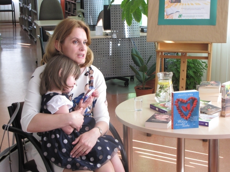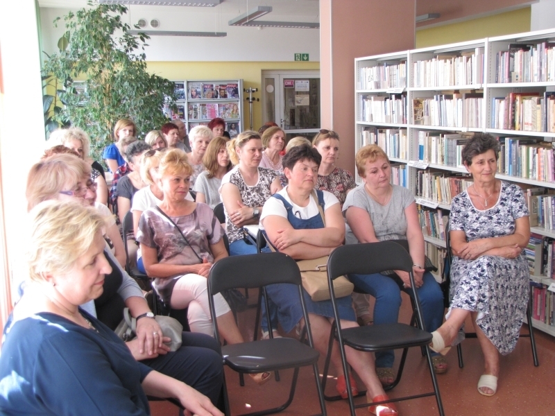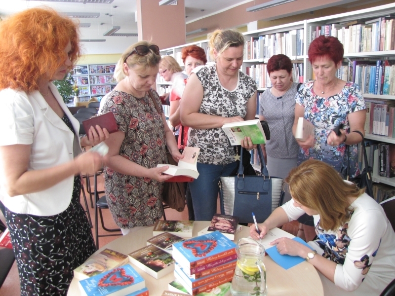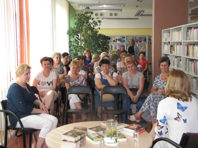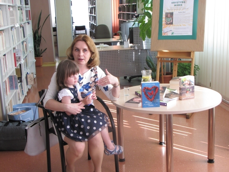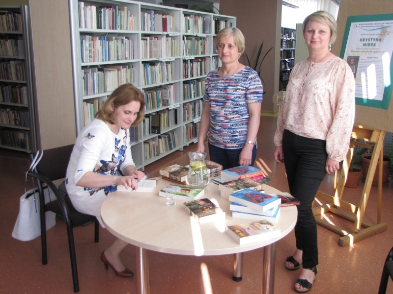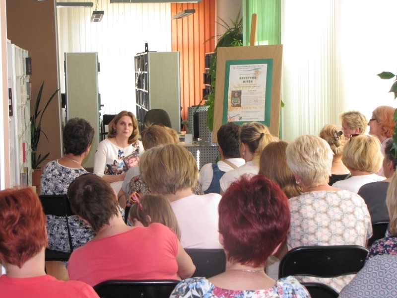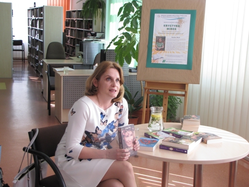 30 maja gościliśmy w Miejsko- Gminnej Bibliotece Publicznej w Połańcu autorkę popularnych powieści dla kobiet - Krystynę Mirek. Pisarka jest absolwentką polonistyki Uniwersytetu Jagiellońskiego. Zanim jej głównym zajęciem stało się pisanie książek, pracowała w szkole ucząc języka polskiego i niemieckiego. Jak powiedziała, przed czterdziestką dokonała podsumowania dotychczasowego życia i postanowiła rozpocząć realizację swoich marzeń. Zawsze lubiła czytać książki i ta pasja poprowadziła ją do pisarstwa. Od pomysłu o napisaniu własnej książki do jego urzeczywistnienia upłynęło ponad dziesięć lat. Systematyczność i ciężka praca sprawiły, że mimo braku znajomości w branży wydawniczej udało się jej wydać w 2011 roku pierwszą powieść ''Prom do Kopenhagi”. Do dzisiaj ukazało się jej piętnaście książek. Saga „Jabłoniowy sad” stała się bestsellerem. Historie, które opisuje są mocno osadzone w realiach codziennego życia. Jest w nich pełno ciepła i nadziei. Czytelnicy odnajdują w nich samych siebie.