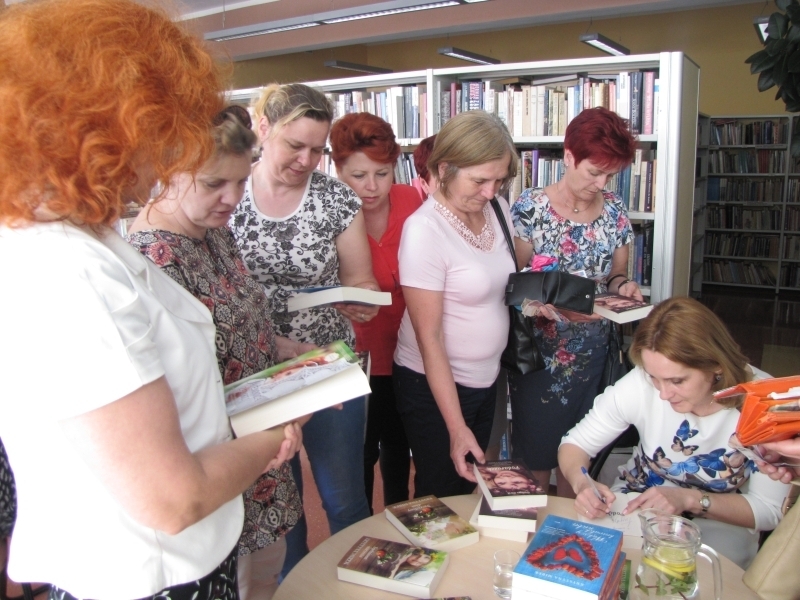 Pisarka gorąco zachęcała panie do realizacji swoich marzeń i nie odkładania ich na później. „...każdy ma jakiś ukryty talent, trzeba go tylko znaleźć i rozwijać”- dodała. Jedna z nas umie dobrze gotować, inna szyć, jeszcze inna szydełkować i można te umiejętności wykorzystać z pomysłem. Czytelniczki pytały też, o to czy pisarce udaje się utrzymać z pisania. Okazuje się, że teraz tak, choć do pewnego momentu było to trudne. Autorka stale współpracuje z wydawcami, ma pomysły na książki i to daje jej poczucie bezpieczeństwa. Na zakończenie Krystyna Mirek podarowała Bibliotece pierwszy tom najnowszej „Sagi rodu Cantendorfów”. W podziękowaniu otrzymała album „Historia, kultura i przyroda Dorzecza Wisły” z podpisami wszystkich uczestników spotkania. Wszyscy, którzy zakupili książki autorki ustawili się w kolejce po jej autograf. Spotkanie zostało dofinansowane ze środków Banku Spółdzielczego w Połańcu.