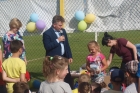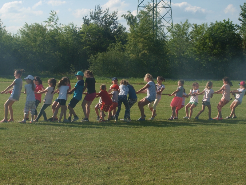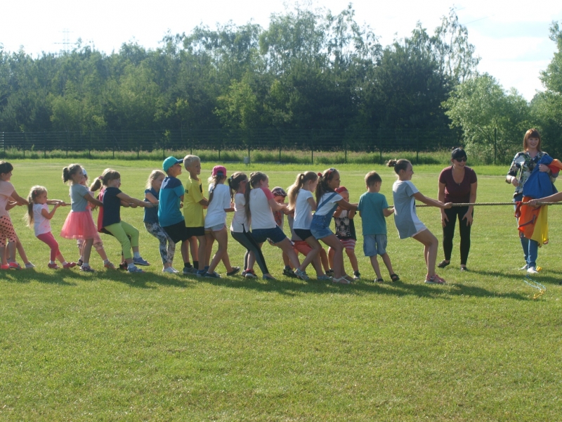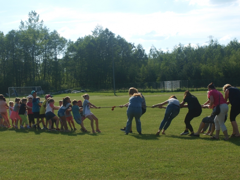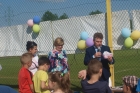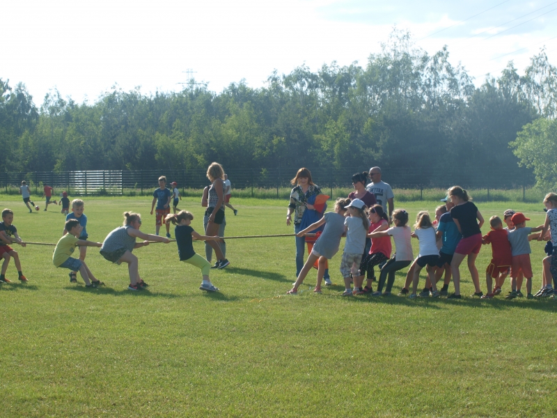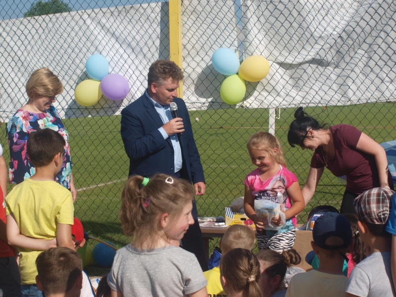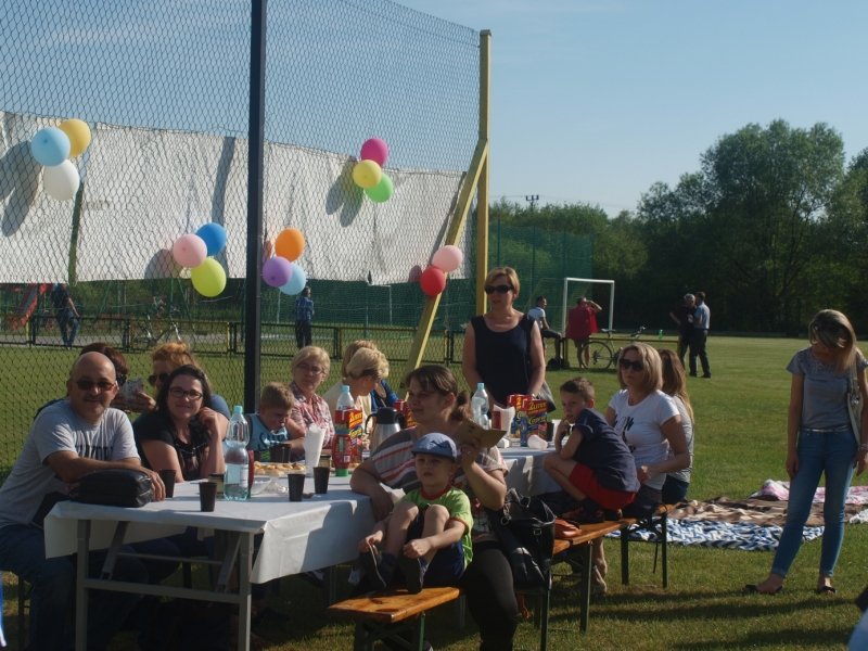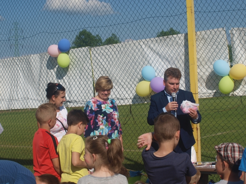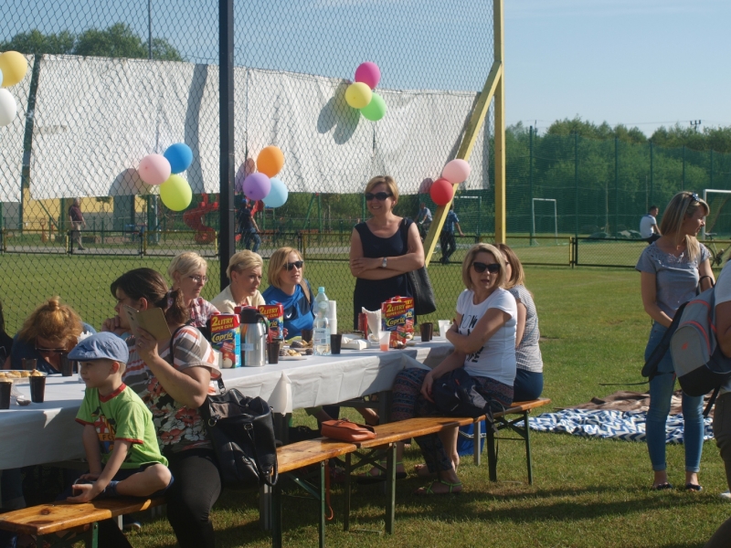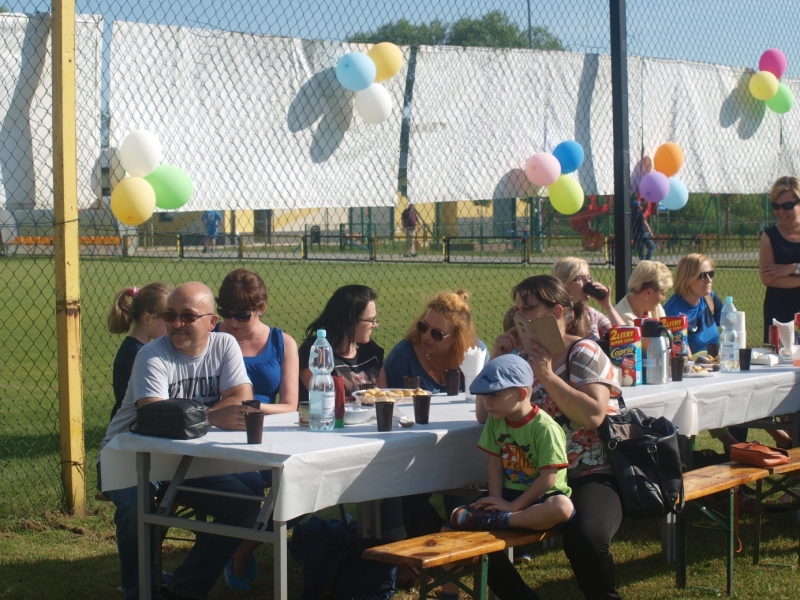 Piknik uświetnili swoją obecnością Burmistrz Miasta i Gminy Połaniec Jacek Tarnowski oraz Skarbnik Gminy Połaniec Małgorzata Żugaj. Życząc zgromadzonym dzieciom i ich rodzicom wspaniałej zabawy, rozpoczęli uroczyście imprezę integracyjną. Miłą niespodzianką dla naszych podopiecznych okazały się prezenty wręczone przez pana Burmistrza i panią Skarbnik. Na dzieci, rodziców i zaproszonych gości czekało mnóstwo atrakcji i konkurencji rodzinnych. Były m.in. zabawy z chustą, hula –hop, gra w zbijanego i w badmintona. Nie zabrakło również rozgrywek w piłkę nożną. Najwięcej uśmiechu wywołały zabawy, które są nam wszystkim doskonale znane - przeciąganie liny i skoki w workach. Rodzice z pełnym poświęceniem i zaangażowaniem uczestniczyli w konkurencjach, lecz w starciu ze swoimi pociechami nie mieli szans. Utalentowane plastycznie mamy malowały na twarzach dzieci prawdziwe arcydzieła. W tym dniu śmiech i radość panowały na całym stadionie! Sprzyjająca pogoda i miła atmosfera sprawiły, że zabawa była fantastyczna! Dla wszystkich uczestników pikniku przygotowany został poczęstunek.