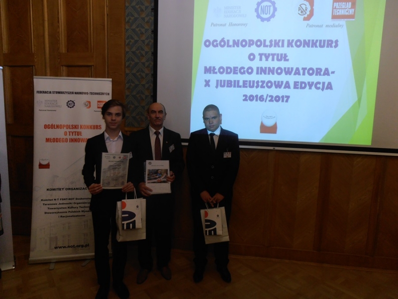Do drugiego z rzędu sukcesu i czwartego w historii konkursów innowacyjnych na szczeblu krajowym oprócz uczniów przyczynili się rodzice i nauczyciele pracujący na codzień z uczniami rozwijającymi zainteresowania techniczne oraz przedstawiciele samorządu terytorialnego. Dzięki uprzejmości Pana Burmistrza Jacka Tarnowskiego oraz zrozumienia współczesnych problemów oświatowych powstała możliwość kontynuowania w/w prac oraz sprawnego dojazdu i powrotu z Warszawy za co są bardzo wdzięczni młodzi mistrzowie wraz z rodzicami.
