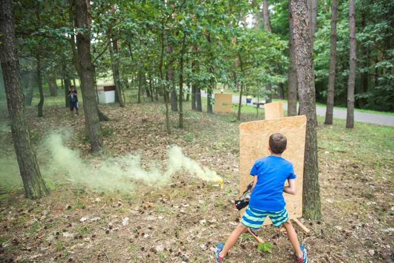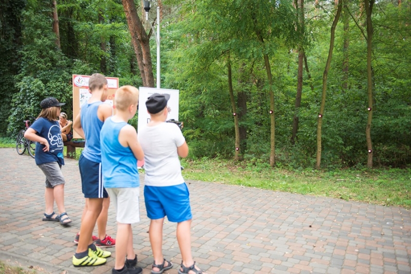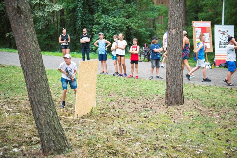 A wszystko za sprawąStowarzyszenia "DZIAŁAJ Z ENERGIĄ" i członków Połanieckiego Klubu Miłośników Gier i Fantastyki. Do udziału w bezkrwawej i bezpiecznej bitwie chętnych nie brakowało. W szranki stanęło 21 śmiałków podzielonych na 7 trzyosobowych drużyn (Biedronki, Prosiaki, Leśne Ludki, Nakrętki, Plaskacze, Hamulce i Szprychy). Przez około 3 godziny trwały pełne zaskakujących zwrotów akcji i przemyślanych ataków laserowe rozgrywki. Mimo upału i zmęczenia zapał do walki nie słabł, żadna z drużyn nie chciała oddaćpola przeciwnikowi. Jedne grupy przygotowywały siędo bitew ćwicząc swoją celnośći strzelając do interaktywnych celów rozmieszczonych na drzewach inne rozgrywały pasjonujące potyczki. Na zakończenie wszyscy jednogłośnie przyznali, że takie rozgrywki są duże lepsze niż gry komputerowe. Kolejne rozgrywki w Laser Strike już we wrześniu, a przed nami jeszcze w tym miesiącu Paintball oraz Gra terenowa z ogniskiem. Zapraszamy - GRAJ(MY) Z ENERGIĄ!