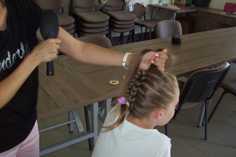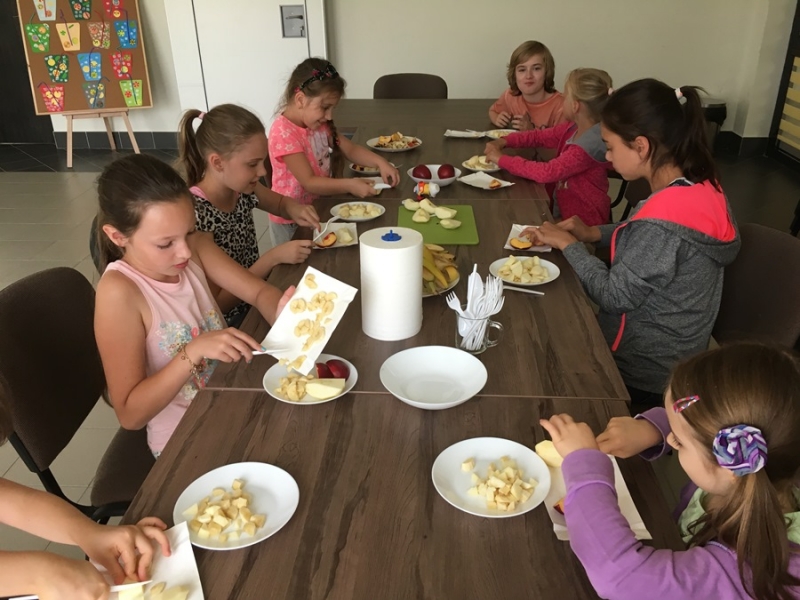 W dni gdy pogoda nas nie rozpieszczała, jedną z form spędzania czasu w świetlicy środowiskowej były projekcje filmów dla dzieci, a także zajęcia plastyczne. Dzieci wykonywały prace związane z podanym tematem. W trakcie prowadzonych zajęć świetlicowych zorganizowany został ,,Salon urody''. Dziewczynki uczyły się jak zrobić manicure i wyczarować twarzową fryzurę. Zajęcia zdecydowanie przypadły im do gustu. Chłopcy z ciekawością podglądali, co się dzieje tuż obok nich. W ramach zajęć kulinarnych nasi uczestnicy mieli możliwość przygotowania samodzielnie zdrowego podwieczorku w formie owocowej sałatki, kanapek. Po wykonanej pracy dzieci ze smakiem zjadły przygotowane przez siebie posiłki.