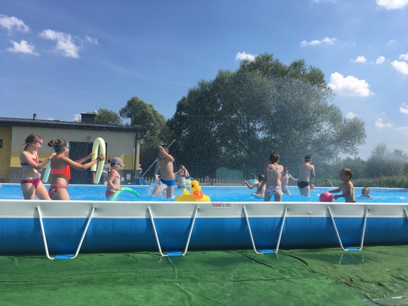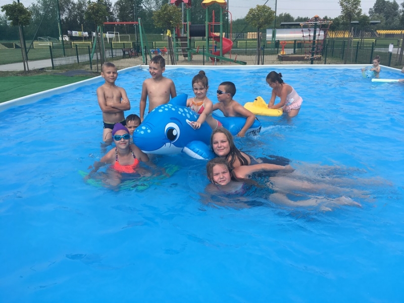 W tym miesiącu piękna pogoda zachęcała nas nie tylko do gier i zabaw w świetlicy, jak również do kąpieli w basenie zewnętrznym udostępnionym przez Ośrodek Sportu i Rekreacji w Połańcu. Szaleństwom w wodzie nie było końca, co widać na załączonych zdjęciach. Odbywały się również zajęcia sportowo- rekreacyjne. Dzieci pod czujnym okiem trenera sportu, grały w piłkę nożną, ćwiczyły na siłowni czy korzystały z jacuzzi. Organizowane były gry rywalizacyjne między uczestnikami, dzięki którym dzieci uczyły się współdziałać w grupie, grać fair play.