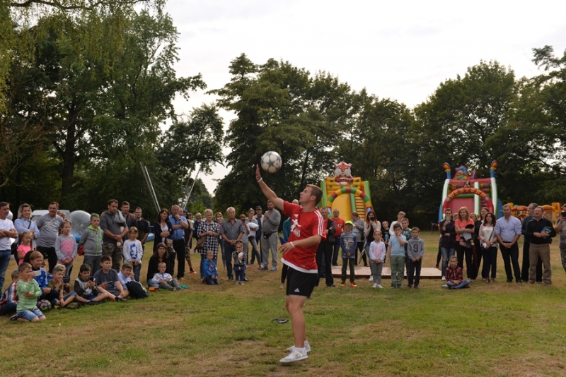 Nie zabrakło atrakcji dla maluchów, które z pomalowanymi buźkami bawiły się piankowymi i plastikowymi klockami lub kolorowały malowanki. Wśród piknikowych propozycji znalazły się wesołe konkurencje i zabawy animacyjne z kowbojem i bezpłatna wata cukrowa. W pikniku wzięła również udział Policja i Straż Pożarna. Obie jednostki przygotowały atrakcje i niespodzianki dla dzieci i młodzieży. Najbardziej podobała się tresura psa policyjnego i możliwość zobaczenia od środka radiowozu policyjnego i samochodu strażackiego z włączeniem sygnału dźwiękowego. Policjanci nie zapomnieli o dorosłych, dla których przygotowali specjalny slalom w alko-goglach. Dodatkowo w tłumie bawiących się dzieci spacerował duży bałwan Olaf ze znanej wszystkim bajki "Kraina Lodu". Gościem specjalnym pikniku był Paweł Skóra - Mistrz Świata, Europy i Polski w sztuczkach piłkarskich. Oprócz świetnego pokazu zsynchronizowanego z muzyką nasz mistrz przez całą imprezę prowadził warsztaty, udzielał rad i wskazówek młodym adeptom sztuki piłkarskiej. Na zakończenie pikniku wszystkie dzieci, które brały udział w zabawie z animatorem otrzymały słodką niespodziankę. To był męczący, ale radosny dzień.
