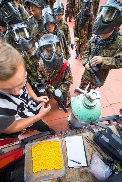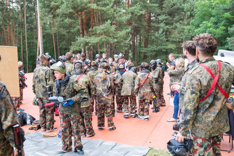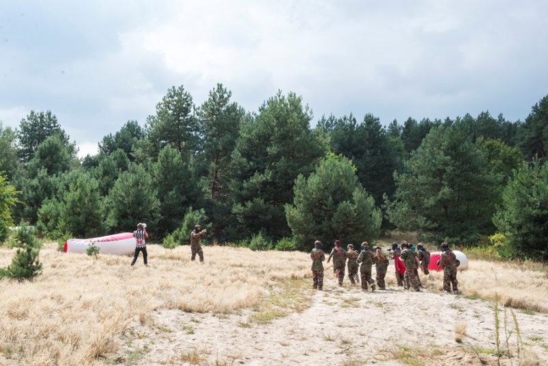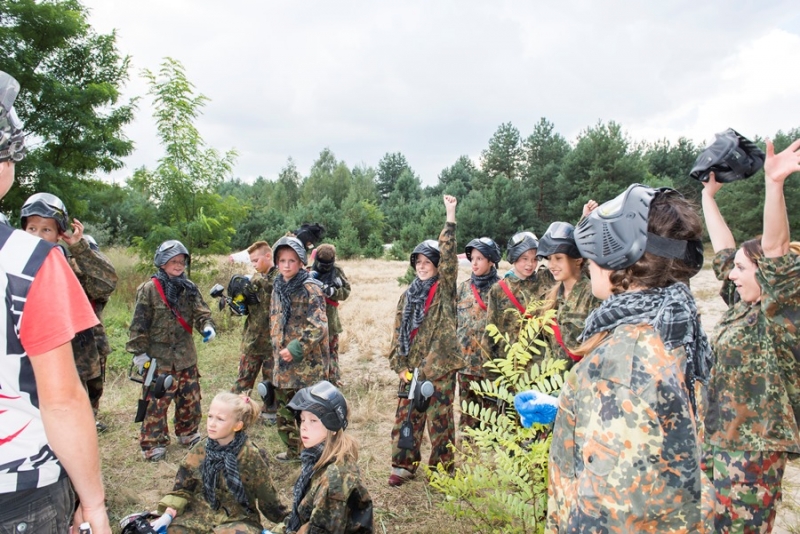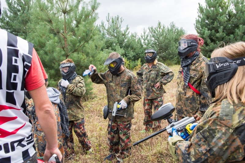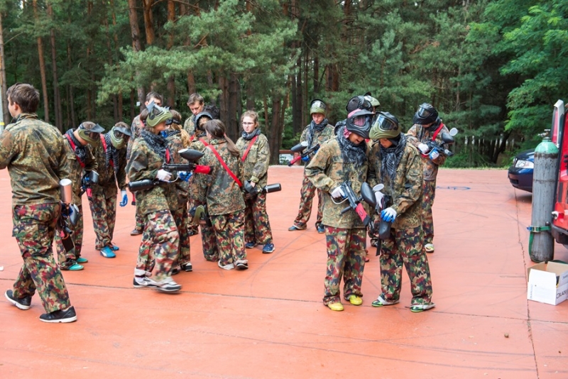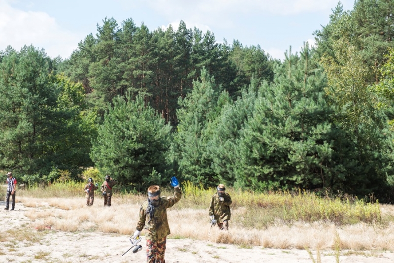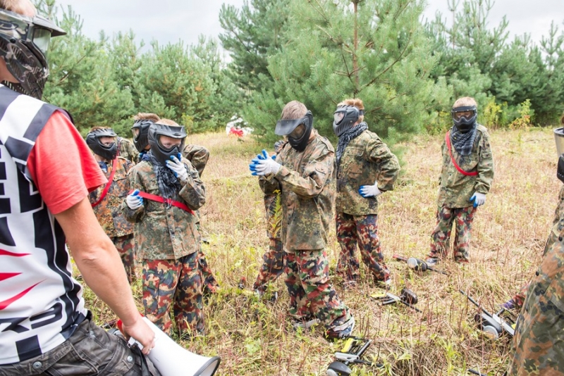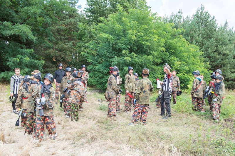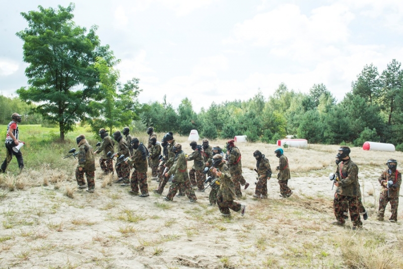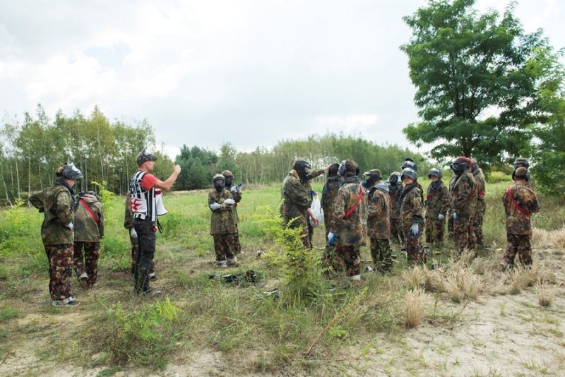 Gra została poprzedzona szkoleniem dotyczącym zasad bezpieczeństwa oraz posługiwania się sprzętem paintball”owym. Zwrócono szczególną uwagę na podstawową zasadą obowiązującą na terenie poligonu, jaką jest bezwzględny nakaz noszenia maski na głowie. Każdy z uczestników został wyposażony w mundur moro, maskę chroniącą twarz, marker (karabin) oraz naboje, czyli specjalne żelatynowe kulki wypełnione naturalnym barwnikiem. Gracze zapoznali się również z usytuowaniem przygotowanego pod rozgrywki terenu i poznali ułożenie czekających na nich przeszkód. Uczestnicy podzieleni na drużyny opracowali swoje strategie walki i rozgrywki rozpoczęły się na dobre!