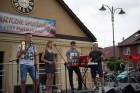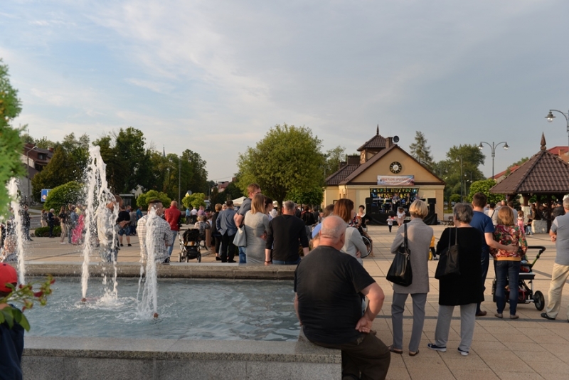 Zespół STASZICÓWKA BAND z Zespołu Szkół im. Staszica w Staszowie pod batutą Pana Andrzeja Stawińskiego zabrał słuchaczy w podróż po świecie dźwięków polskich i światowych hitów. Mocne, charakterne granie i ujmujący, kobiecy wokal Marii Magdziarz na długo pozostanie w pamięci słuchaczy. Tego popołudnia publiczność została muzycznie dopieszczona. Występ zespołu SIDUS z Centrum Kultury i Sztuki w Połańcu poruszył najdelikatniejsze struny ludzkich emocji czarując muzyką i głosem. Miła dla ucha, choć krótka prezentacja w pełni oddała pasję naszych wokalistek. Zakończeniem cyklu „Muzycznych spotkań przy fontannach” była artystyczna prezentacja grup i zespołów działających w Centrum Kultury i Sztuki w Połańcu. Nasza młodzież wręczyła zgromadzonej widowni bukiet muzycznych niespodzianek. Występy w sali widowiskowej CKiSz zaczęły się od machnięcia batutą. Wspaniały koncert z pełnym profesjonalizmem zagrała MŁODZIEŻOWA ORKIESTRA DĘTA z kapelmistrzem Panią Joanną Dryką. Był to pierwszy od kilku miesięcy występ 15 osobowej orkiestry, złożonej z młodych ludzi, których łączy pasja i wspólne odkrywanie tajemnic dźwięków. Z ludowym przytupem zagrała KAPELA „NIECKA POŁANIECKA” pod batutą Pana Andrzeja Stawińskiego. Szczypta folkloru i ludowizny w połączeniu z energią wokalistek nie pozwalała usiedzieć w miejscu. Podczas tego popołudnia niczym w kalejdoskopie zmieniało się natężenie, charakter i styl muzyki. Było marszowo, ludowo i popowo. Spontanicznie i z humorem, teatralnie i z odwagą znakomicie zaprezentował się zespół WAJPAK. Jak zawsze stanęli na wysokości zadania bowiem dla tej grupy przyjaciół nie ma trudnych, artystycznych wyzwań. Z uśmiechem, świetnie zaprezentował się w mini koncercie zespół RADIUS. Wokalistki tej grupy tworząc klimat lat 70 przeniosły publiczność w sentymentalną podróż z największymi przebojami Anny Jantar. Obydwa nasze zespoły przygotowywane są przez Panią Marzenę Drożdżowską. Pełni prezentacji artystycznych dopełniły występy formacji tanecznych DIGRESS pod kierunkiem Pani Weroniki Koziarz- Dygulskiej. Dwa, jakże różne układy pokazały spektrum możliwości jakie daje interpretacja muzyki za pomocą ruchu, mimiki i choreografii.