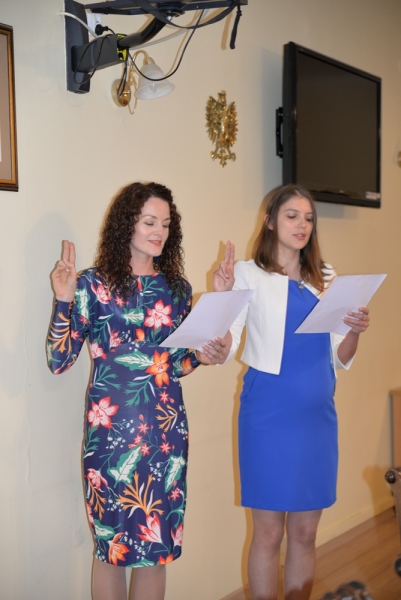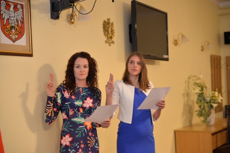 "Ślubuję rzetelnie pełnić mą powinność nauczyciela, wychowawcy i opiekuna młodzieży, dążyć do pełni rozwoju osobowości ucznia i własnej, kształcić i wychowywać młode pokolenia w duchu umiłowania Ojczyzny, tradycji narodowych, poszanowania Konstytucji Rzeczpospolitej Polskiej. Tak mi dopomóż Bóg" - takie ślubowanie 12 września 2017 roku w Urzędzie Miasta i Gminy Połaniec złożyła Pani Emilia Dudek (nauczyciel języka polskiego oraz zajęć rewalidacyjnych, zatrudniona jako nauczyciel w Zespole Placówek Oświatowych w Ruszczy - Publiczna Szkoła Podstawowa, Publiczne Gimnazjum) i Pani Dorota Podsiadły (nauczyciel języka niemieckiego i angielskiego Zespół Placówek Oświatowych w Ruszczy: Publiczne Gimnazjum ul. Szkolna 2) - nauczycielki, które zdały pozytywnie egzamin na stopień nauczyciela mianowanego.