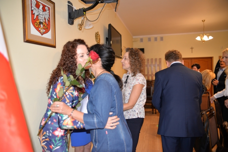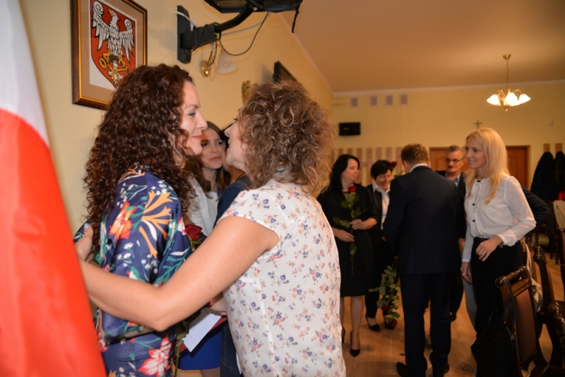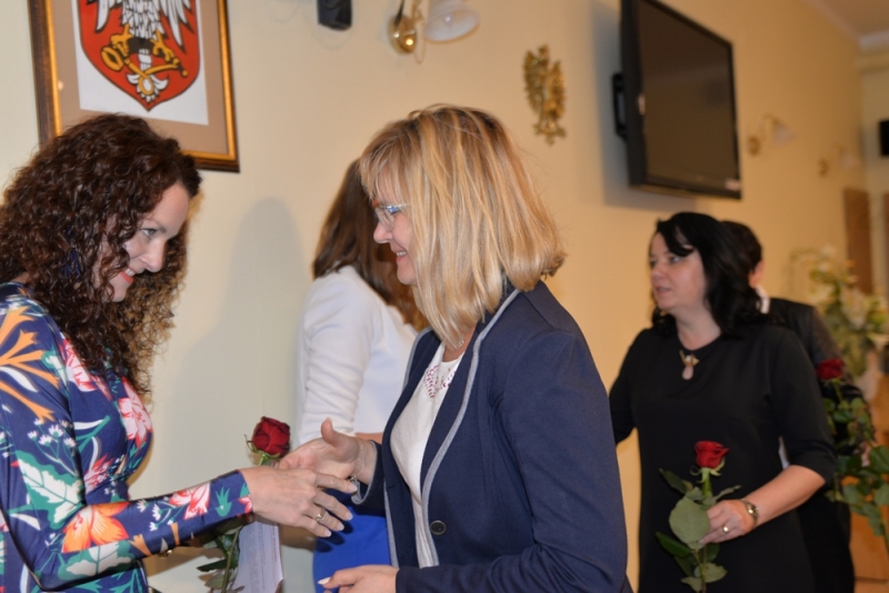 Po odśpiewaniu Hymnu Państwowego i złożeniu ślubowania, panie odebrały akt mianowania i symboliczną różę z rąk Burmistrza – Jacka Tarnowskiego, Przewodniczącego Rady Miejskiej – Stanisława Lolo oraz moc życzeń i gratulacji od dyrekcji. Szczególne gratulacje dla dydaktyków złożyli: Burmistrz- Jacek Tarnowski, Przewodniczący Rady Miejskiej – Stanisław Lolo, Skarbnik Gminy- Małgorzata Żugaj, Przewodnicząca Komisji Oświaty, Kultury i Sportu- Małgorzata Dalmata – Konwicka, kierownik SCUW – Agnieszka Trela oraz dyrektorzy placówek oświatowych. W swoich przemówieniach podkreślali, że praca nauczyciela jest szczególnym powołaniem do czynnego towarzyszenia rozwojowi drugiego człowieka. Jest to wielkie wyzwanie - niezwykle trudne i odpowiedzialne. Serdeczne gratulacje zdobytego awansu z życzeniami dalszego rozwoju zawodowego i czerpania radości z tej najpiękniejszej profesji, padały z ust każdego przemawiającego.