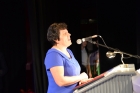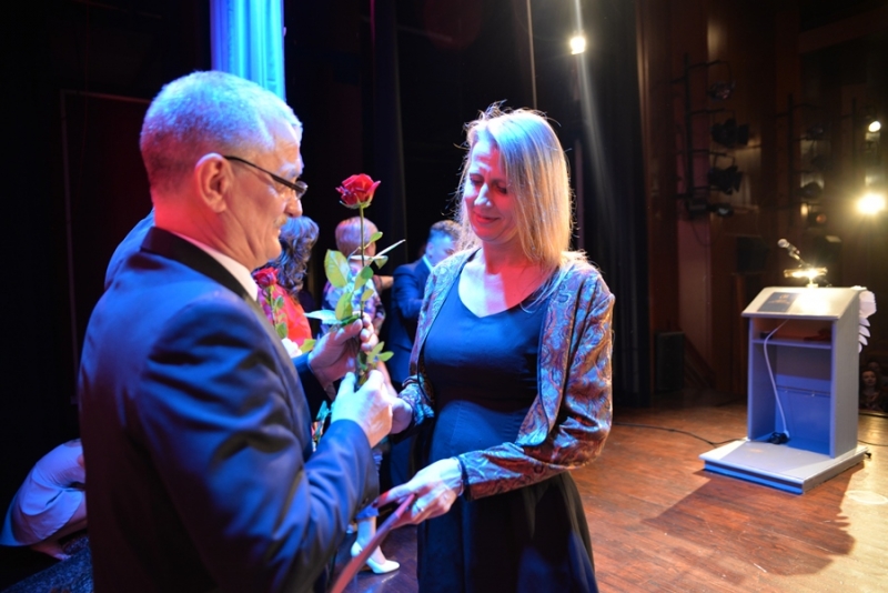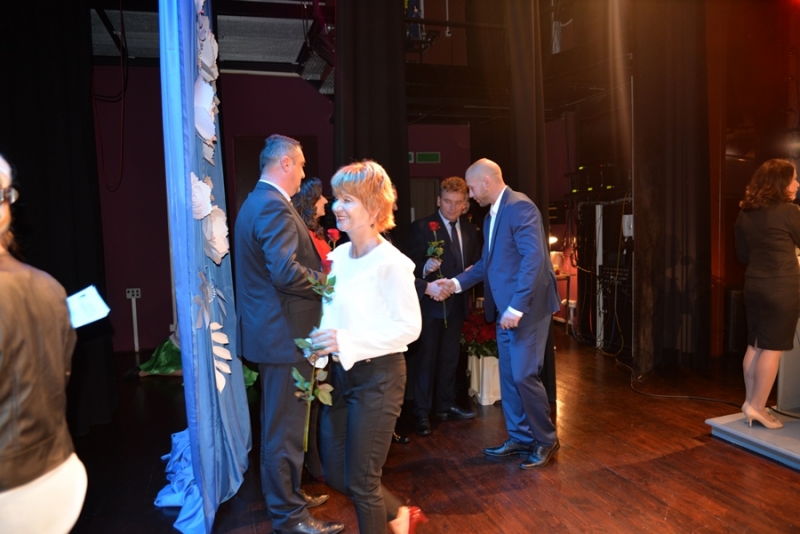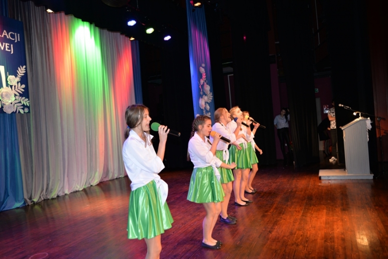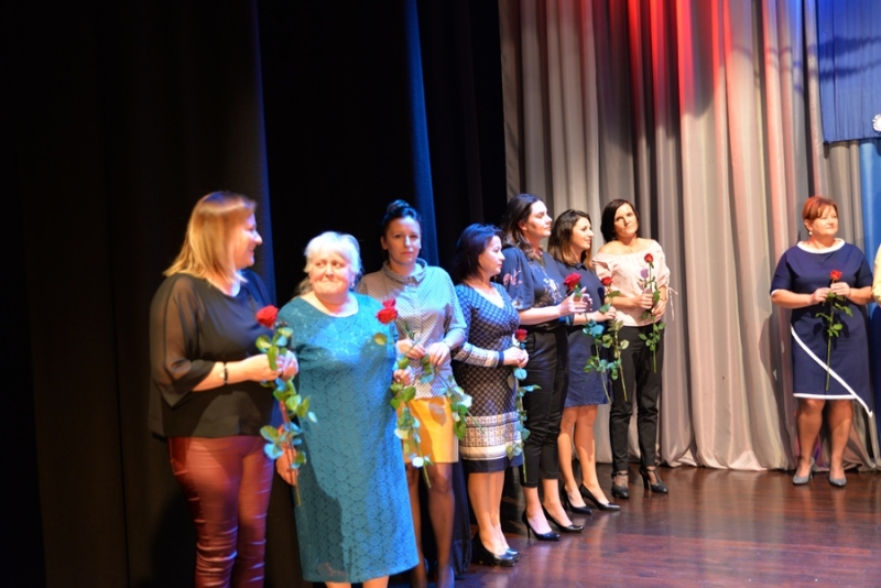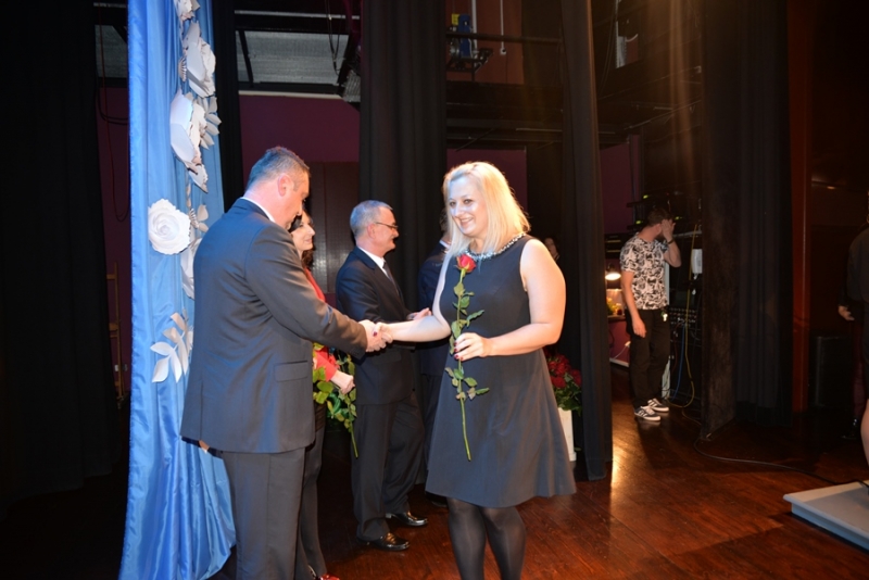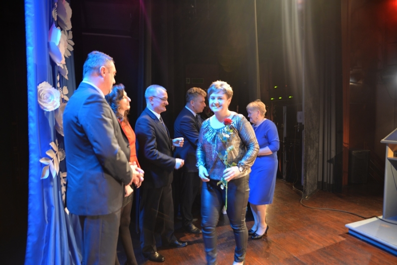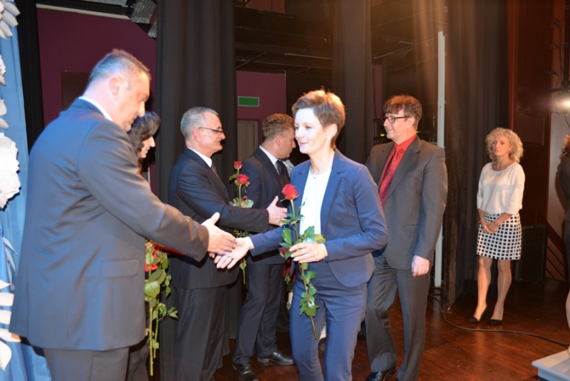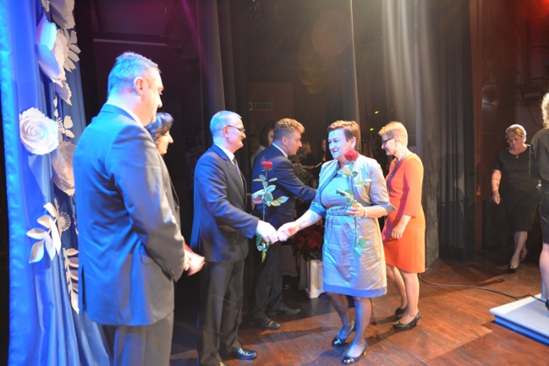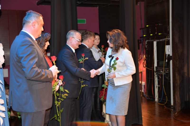 Następnie miejsce na mównicy zajął Przewodniczący Rady Miejskiej – Stanisław Lolo składając życzenia świętującym, podkreślając, że praca z dziećmi i młodzieżą jest niezwykle trudna, ale równie bardzo potrzebna. Podziękował wszystkim nauczycielom i pracownikom szkół za trud, jaki każdego dnia wkładają w proces nauki oraz wychowania dzieci i młodzieży. Zapewnił także, że mając świadomość, jak ważna jest edukacja dla zrównoważonego rozwoju gminy, nadal będą czynione starania by połanieccy uczniowie, pedagodzy i pracownicy szkół zmagali się ze swymi zadaniami w jak najlepszych warunkach. Bardzo ciepłe słowa w imieniu marszałka – Adama Jarubasa przekazała radna sejmiku województwa – Ewelina Bień, - były to słowa podziękowań nauczycielom i pracownikom szkół, gratulacje, a także słowa pochwały za prawidłowo konstruowane projekty oświatowe przez gminę Połaniec, co z kolei przekłada się na otrzymane dofinansowania i realizacje zadań. Radna podziękowała na ręce burmistrza i przewodniczącego gorące podziękowania za ogrom wkładanej pracy i owocną współpracę.
