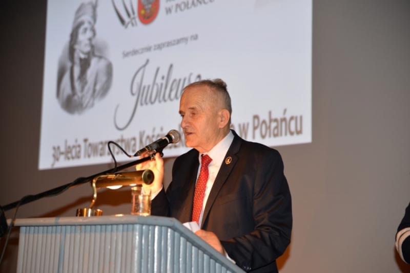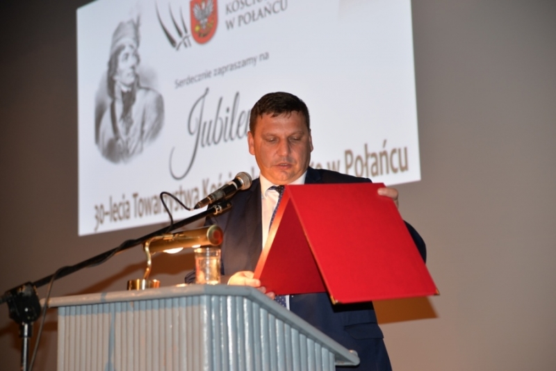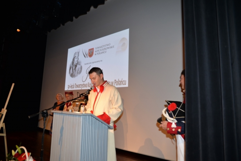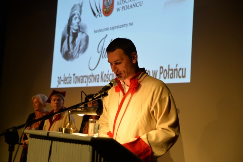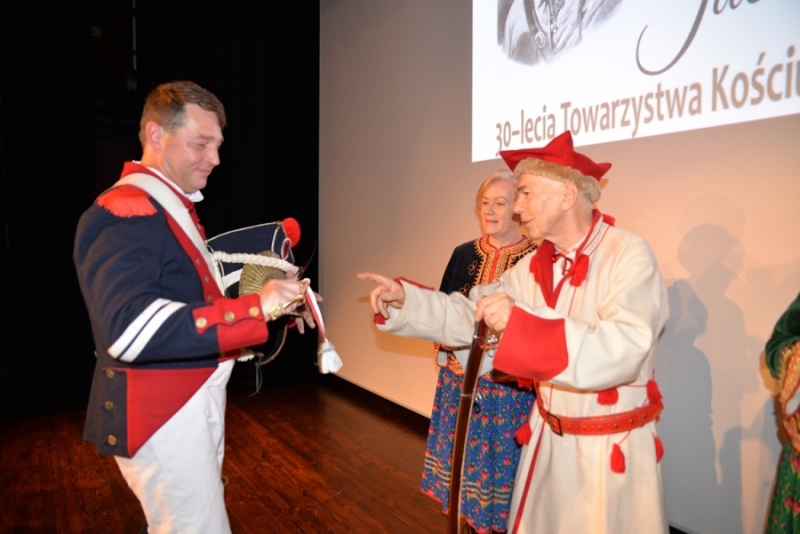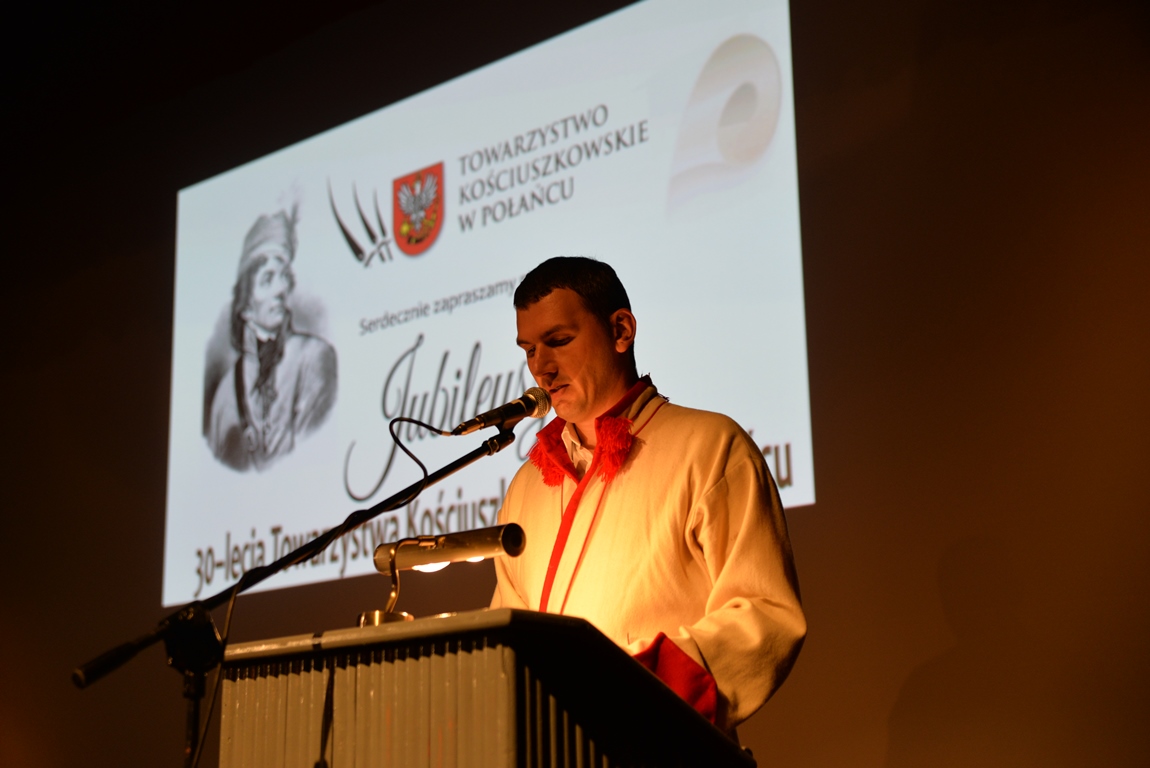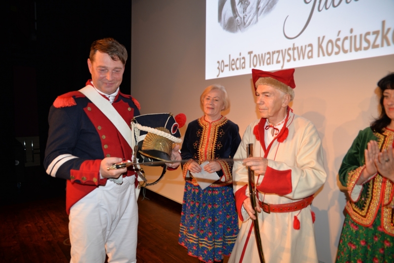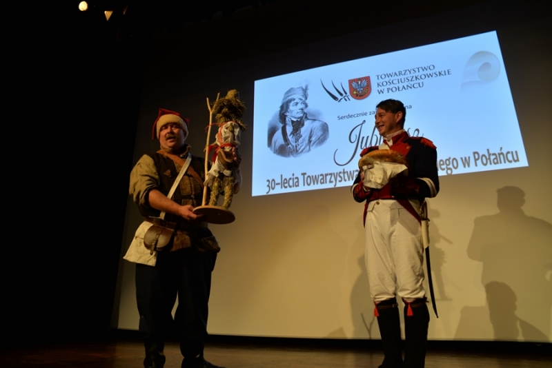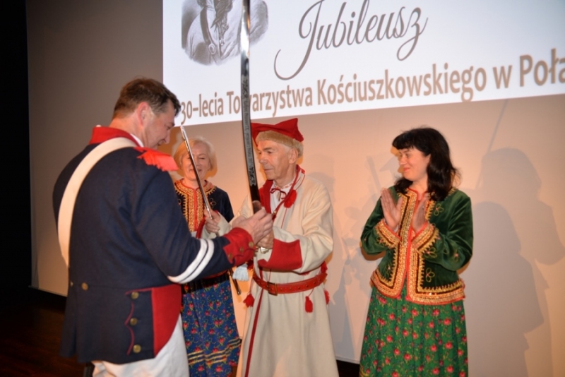 W sobotę 21 października w Sali kinowej połanieckiego Centrum Kultury i Sztuki odbyła się niecodzienna impreza – Jubileusz 30 – lecia Towarzystwa Kościuszkowskiego w Połańcu. Były wspomnienia, prezenty, niespodzianki oraz ciekawi goście. Wszystko w pięknej historycznej oprawie. Uroczystości rozpoczęły się od Poloneza w wykonaniu członków i przyjaciół Towarzystwa, do którego choreografię przygotowała pani Urszula Żurawska ze stowarzyszenia „Bliżej”. Zanim rozpoczęła się pierwsza część uroczystości, Eugeniusz Skoczeń z Racławic oficjalnie wręczył honorowemu Prezesowi Towarzystwa – Mieczysławowi Machulakowi „Krzyż Kresowy” (Krzyż Czynu Zbrojnego Polskiej Samoobrony na Kresach Wschodnich Rzeczpospolitej). Było to podziękowanie dla naszego kolegi, którego życiową pasją jest historia i tradycja ludzi zamieszkującej dawne, wschodnie tereny naszego kraju.