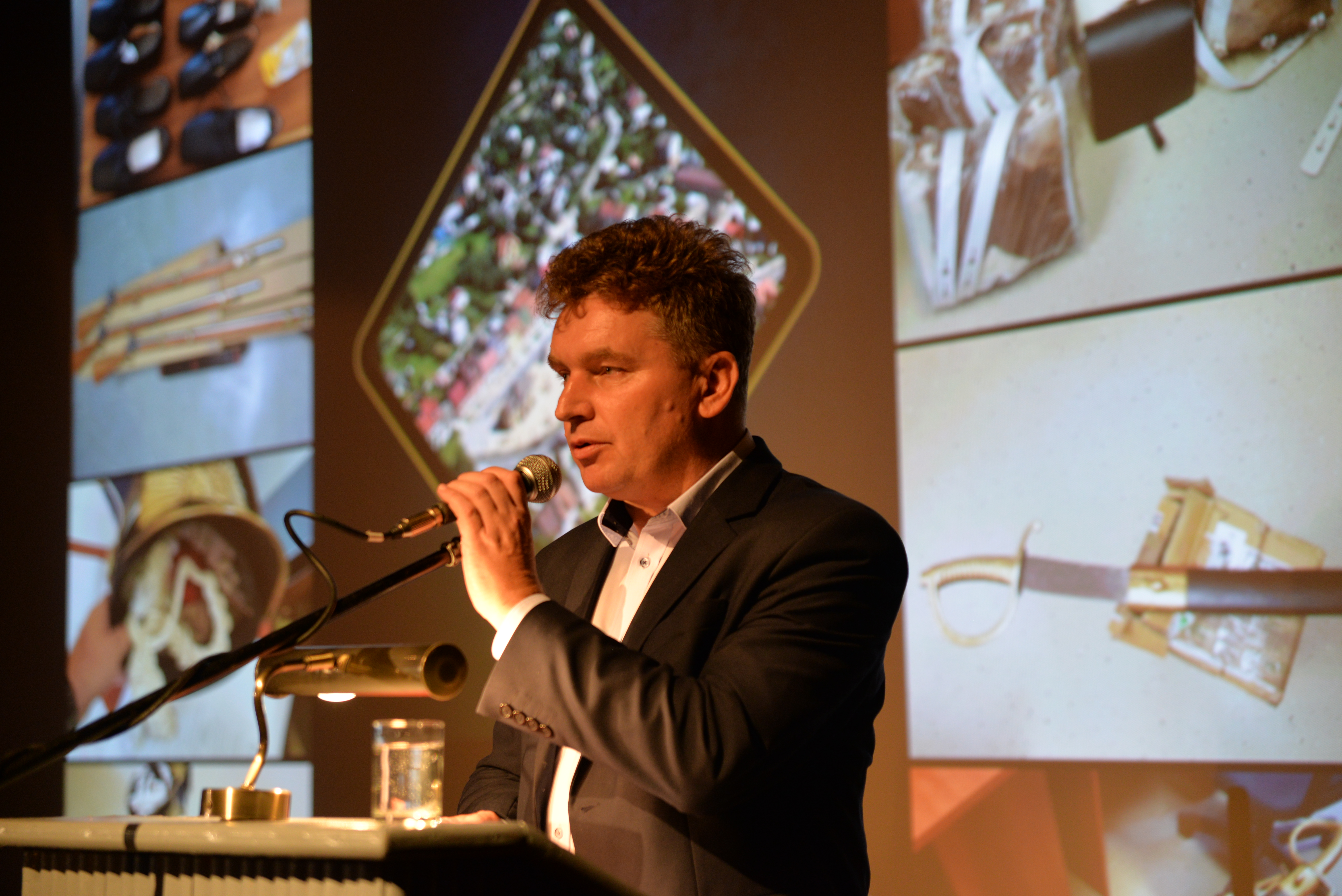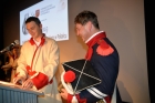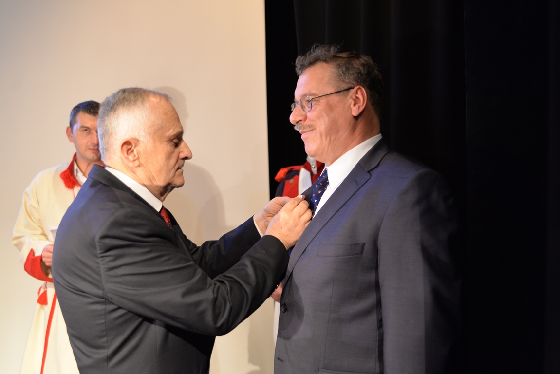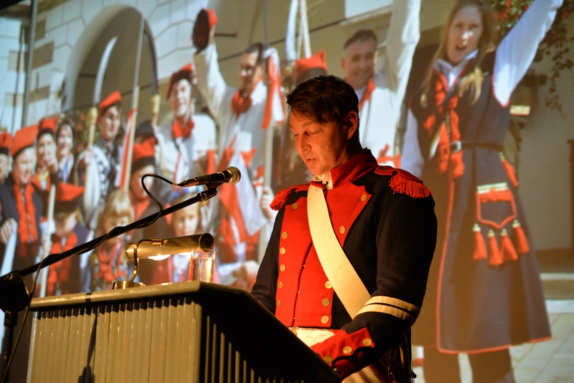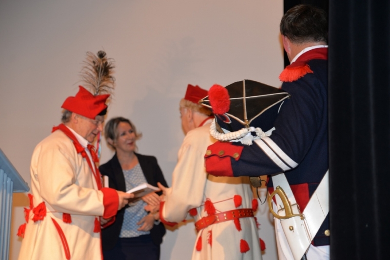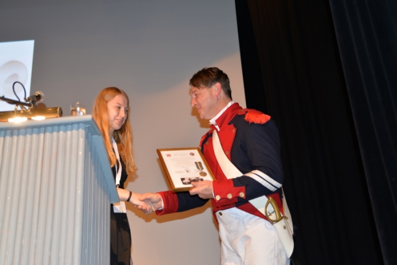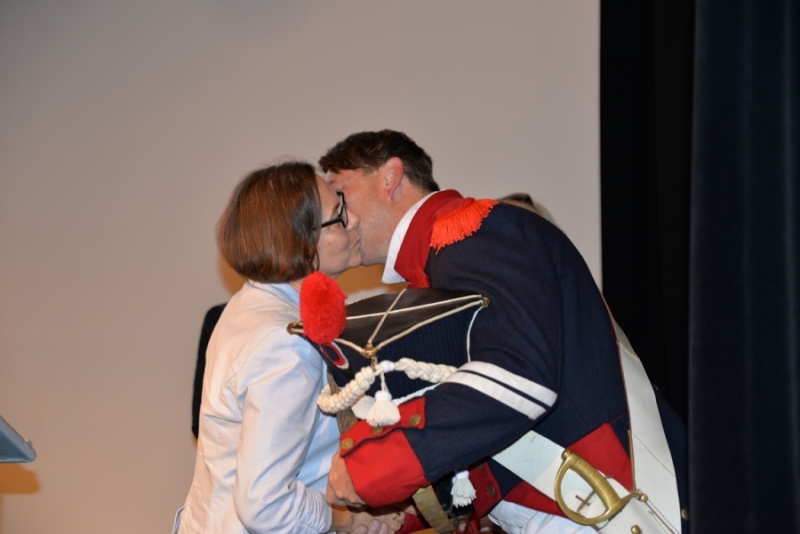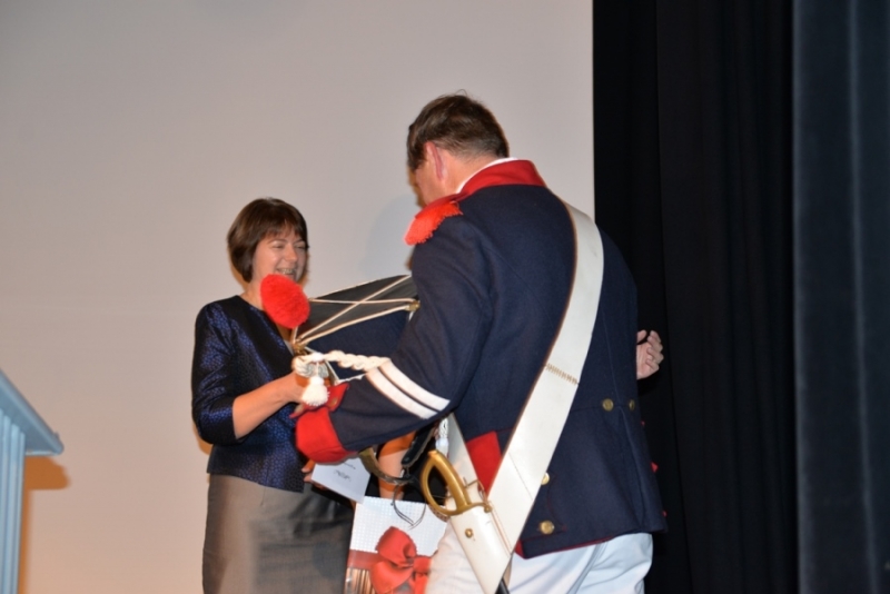Pamiątkowe monety od dyrektora Oddziału NBP w Kielcach Grzegorza Kłaczkiewicza otrzymali: Burmistrz Połańca Jacek Tarnowski (syn założyciela Towarzystwa Kościuszkowskiego), Lech Żak – Prezes Zarządu ENEA Elektrownia Połaniec SA (największego zakładu wspierającego zawsze nasze stowarzyszenie, Mieczysław Machulak (prezes TK w latach 1999-2007), Radosław Matusiewicz (obecny prezes TK), Konstanty Michorowski (najstarszy „czynny kosynier”, który tym samym powiększył swoją kolekcję numizmatyczną) oraz Towarzystwo Kościuszkowskie (do dyspozycji organizacji). Na zakończenie Towarzystwo Kościuszkowskie otrzymało wiele wspaniałych prezentów i usłyszało mnóstwo ciepłych słów. Burmistrz Jacek Tarnowski dokonał też symbolicznego przekazania rekwizytów i umundurowania zakupionego dla Towarzystwa w ramach projektu „Miasto Kościuszki 2017”. Była też jedna, szczególna niespodzianka. Radosław Matusiewicz otrzymał od swoich Przyjaciół wspaniałą szablę, wzorowaną na oryginalnej „szabli Kościuszki”. Po przemówieniach i prezentach od naszych gości, wszyscy przeszli do Sali kawiarnianej, gdzie czekał niezwykły poczęstunek. Były nim potrawy przyrządzone według staropolskich przepisów, w oparciu o to, co jadał nasz Bohater. Była więc kasza jęczmienna z boczkiem, pierogi litewskie (ze słodką kapustą i mięsem), pierogi białoruski (z kaszą, serem, cebulą i okrasą), pampuchy z żurawiną, pampuchy z mięsem oraz przysmaki połanieckie (zwłaszcza niepowtarzalne Serdelki od Pana Kazimierza Zalińskiego). O tę przepyszną część imprezy zadbali Jerzy Stefaniak, a także panie z Góreckiego Stowarzyszenia Kobiet „Viktoria”. Jubileuszowi towarzyszyły też okolicznościowe wystawy. Pierwszą z nich pn. “30 lat utrwalania tradycji kościuszkowskich” – przygotowała połaniecka Biblioteka. Zaprezentowano na niej dorobek wydawniczy naszego stowarzyszenia, archiwalne artykuły z prasy o naszej działalności oraz kalendarium ważnych wydarzeń z historii Towarzystwa. Druga to wystawa zdjęć realizowana w ramach projektu „Miasto Kościuszki 2017”, pokazująca najciekawsze działania przeprowadzone w bieżącym roku. Goście opuszczali Połaniec zadowoleni i najedzeni. Wszyscy podkreślali udział w uroczystościach grupy naszej wspaniałej młodzieży, w strojach kosynierskich. Takiej młodzieży zazdrości nam cała Polska.
