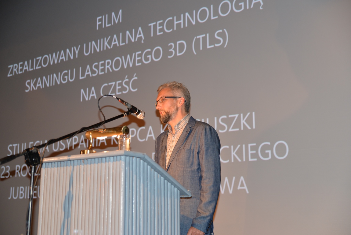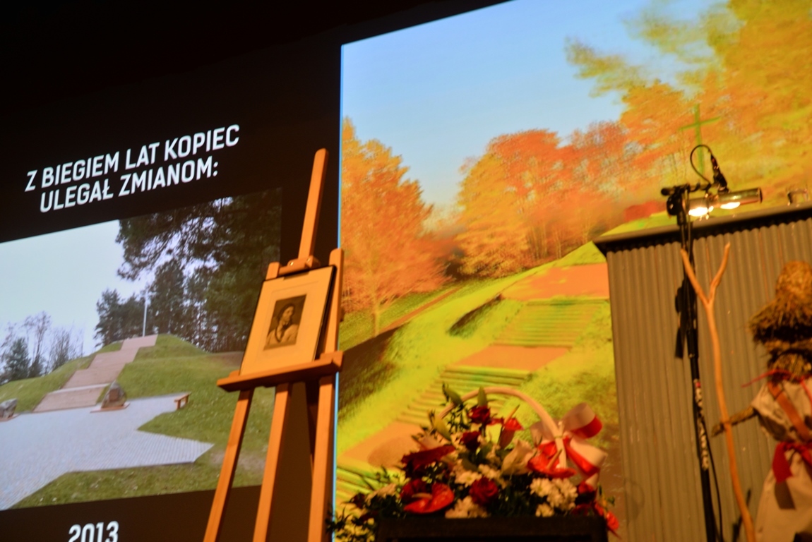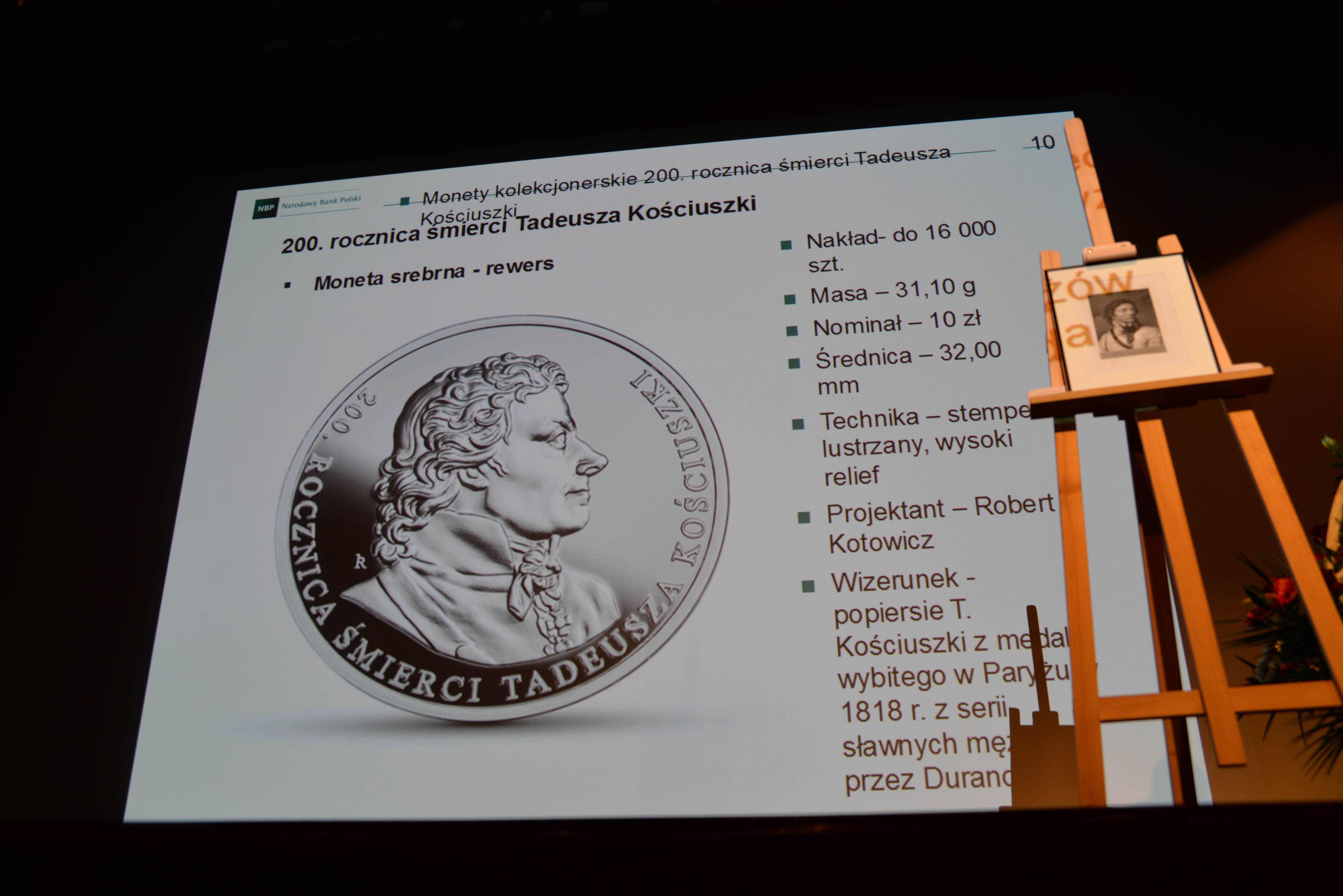Część pierwszą jubileuszu rozpoczęła Małgorzata Dalmata – Konwicka przypominając początki tradycji kościuszkowskich w naszym mieście. Prezentacja druga, to okres działalności w latach 1999-2007, przedstawiony przez Mieczysława Machulaka, ówczesnego prezesa TK. Ostatnią prezentację, obejmującą najbliższe lata działań, omówił Radosław Matusiewicz, obecny prezes „kościuszkowców”. Część pierwszą zakończył tradycyjny Krakowiak w wykonaniu naszych Przedszkolaków oraz piosenka Dziewcząt z Centrum Kultury w Połańcu. Po tych występach, prowadzący jubileusz Marek Pedyński, zaprosił wszystkich na przerwę kawową, na której goście mogli spróbować ulubionej przez Tadeusza Kościuszkę kawy z żołędzi oraz pączków z różą, którymi zajadał się nasz Bohater podczas wizyt u swojej siostry.Część druga uroczystości należała do naszych specjalnych gości. Rozpoczął ją Artur Komorowski, który w imieniu swoich przyjaciół z firmy GEOCARTIS z Poznania, zapowiedział film wykonany przez tą właśnie firmę. Film wykorzystujący technologię skaningu 3D został wykonany przez naszych kolegów specjalnie dla naszego 100-letniego Kopca Kościuszki, w ramach Roku Kościuszkowskiego. Kolejna prezentacja zachwyciła zwłaszcza piękniejszą część naszej widowni, a dotyczyła nowej odmianie róży – Róży Tadeusza Kościuszki. Łukasz Rojewski, Prezes Polskiego Związku Różanego z pasją przedstawił zarówno ten specjalny gatunek, jak i ciekawostki historyczne dotyczące hodowli róż w Polsce i świecie. Ostatnia prezentacja była szczególnie interesująca dla osób interesujących się numizmatyką. Dzięki naszej działalności, zostaliśmy zauważeni i docenieni przez Narodowy Bank Polski. Instytucja ta w ramach swej działalności upamiętnia najważniejsze wydarzenia i postacie związane z historią Polski poprzez emisję okolicznościowych monet. NBP nie mógł więc w Roku Kościuszkowskim pominąć patrona naszego miasta. Wicedyrektor kieleckiego oddziału NBP, Krzysztof Szczerba zaprezentował zebranym zarówno historię i zasady emisji monet okolicznościowych, jak i dokładnie omówił wydane monety poświęcone postaci Tadeusza Kościuszki. Łącząc promocję monet okolicznościowych z jubileuszem Towarzystwa Kościuszkowskiego, Narodowy Bank Polski przypieczętował wspaniałym prezentem. Była nim pula monet, dla osób i instytucji zasłużonych dla kultywowania tradycji kościuszkowskich w Połańcu.